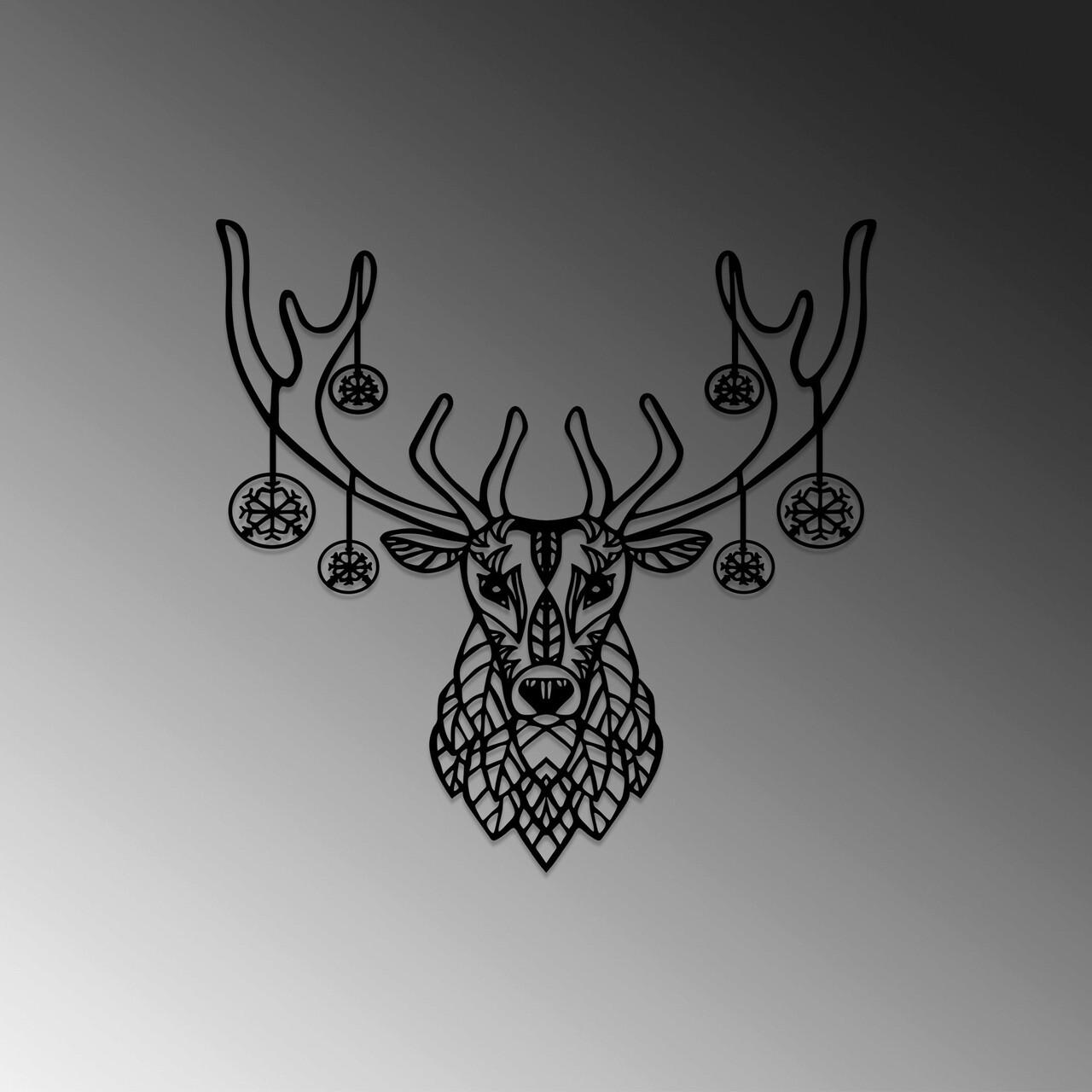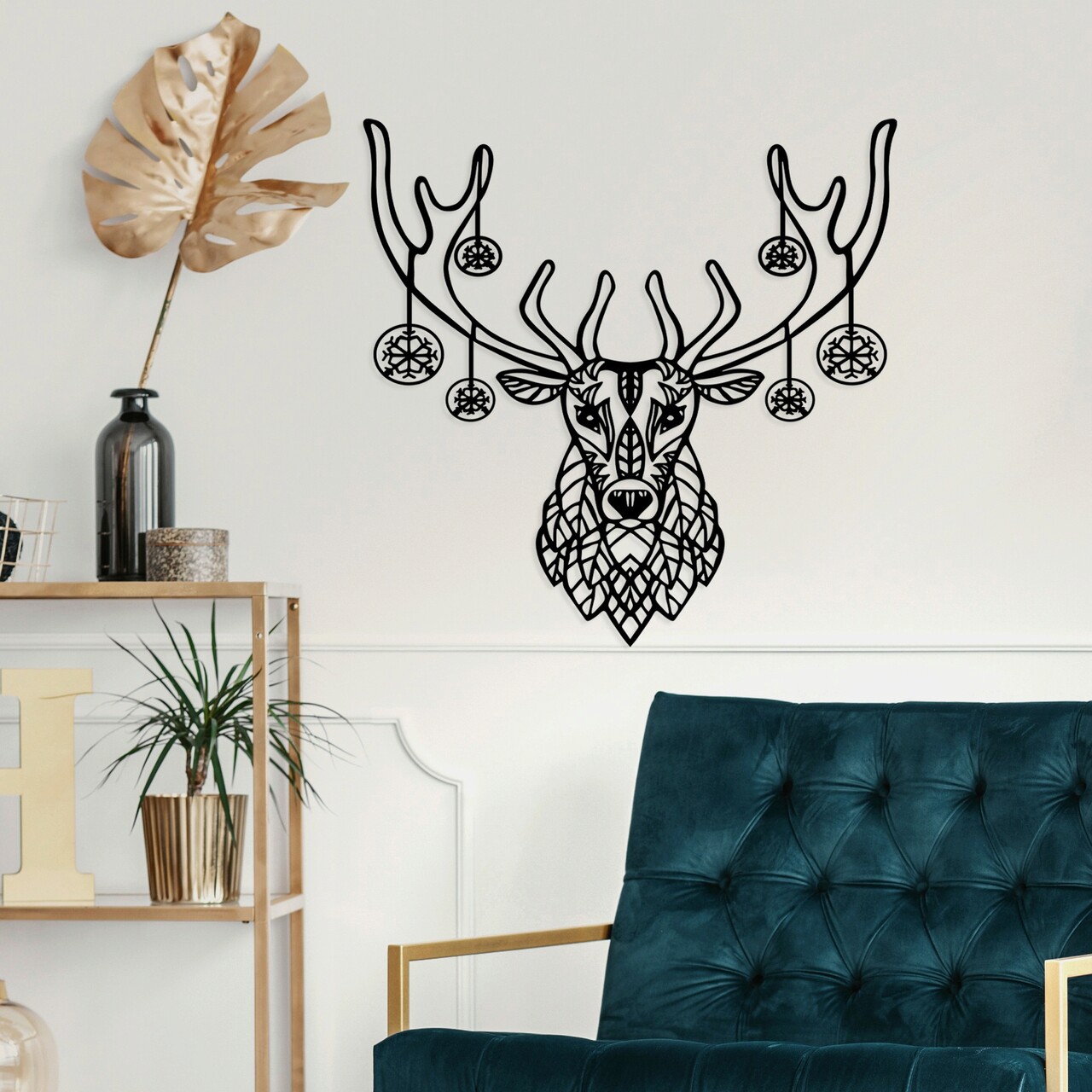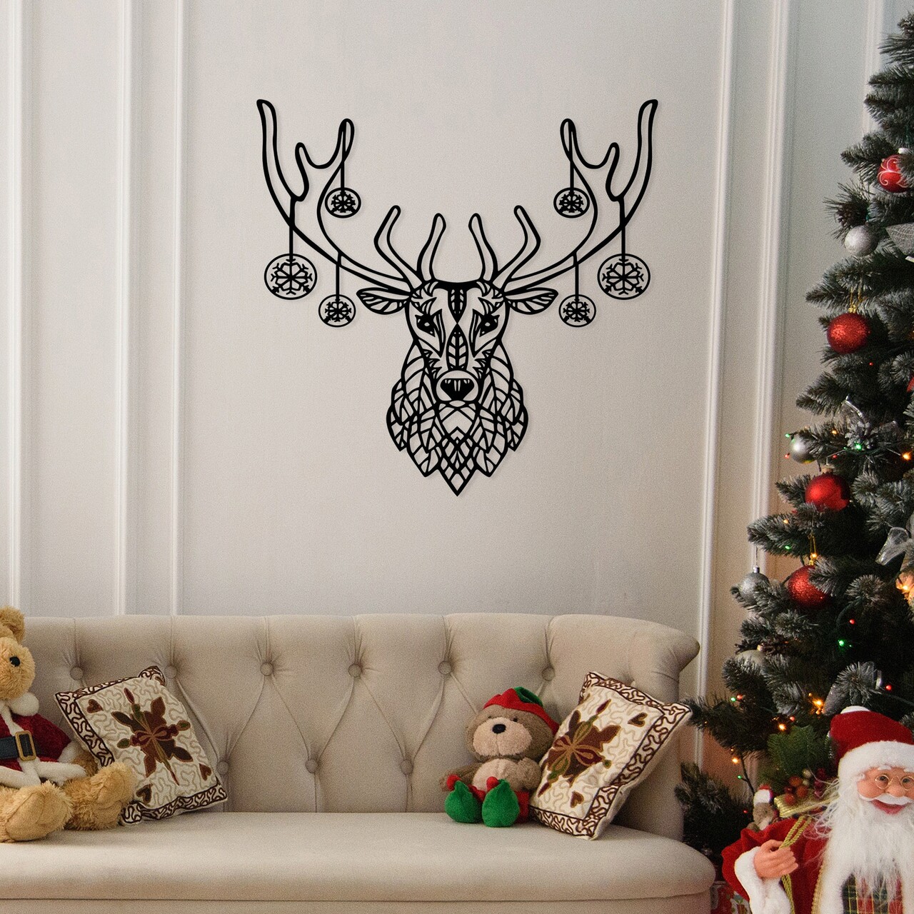 Decoratiune de perete, Christmas Deer, Metal, Dimensiune: 70 x 69 cm, Negru