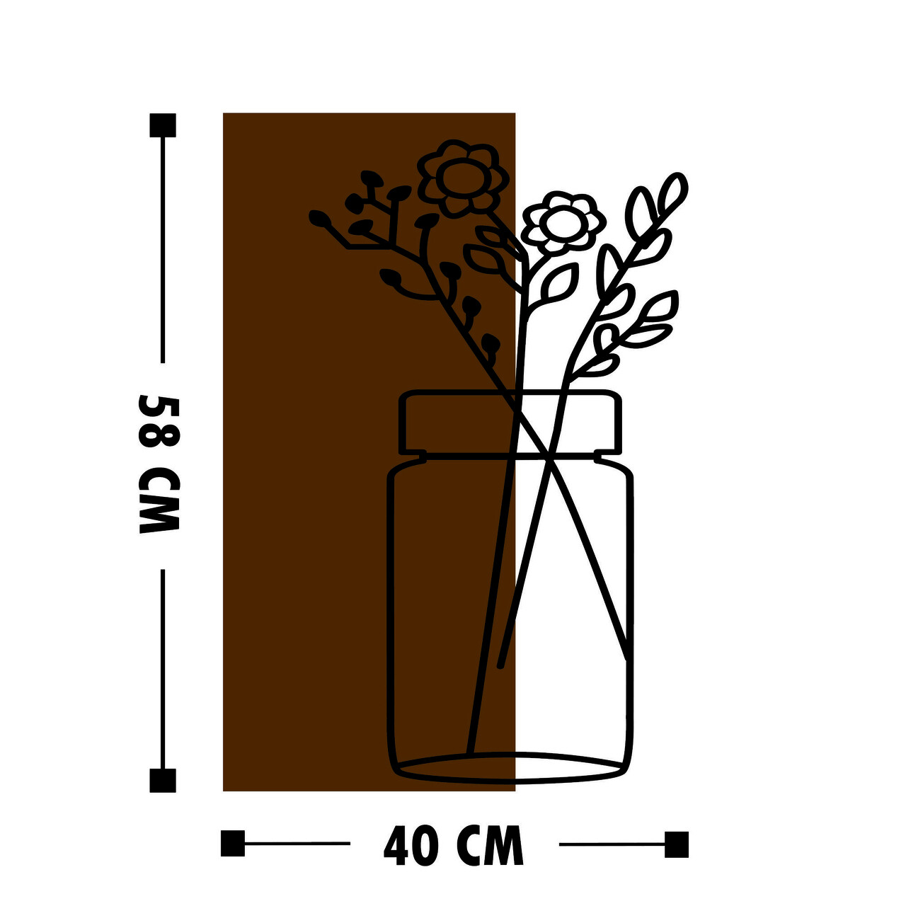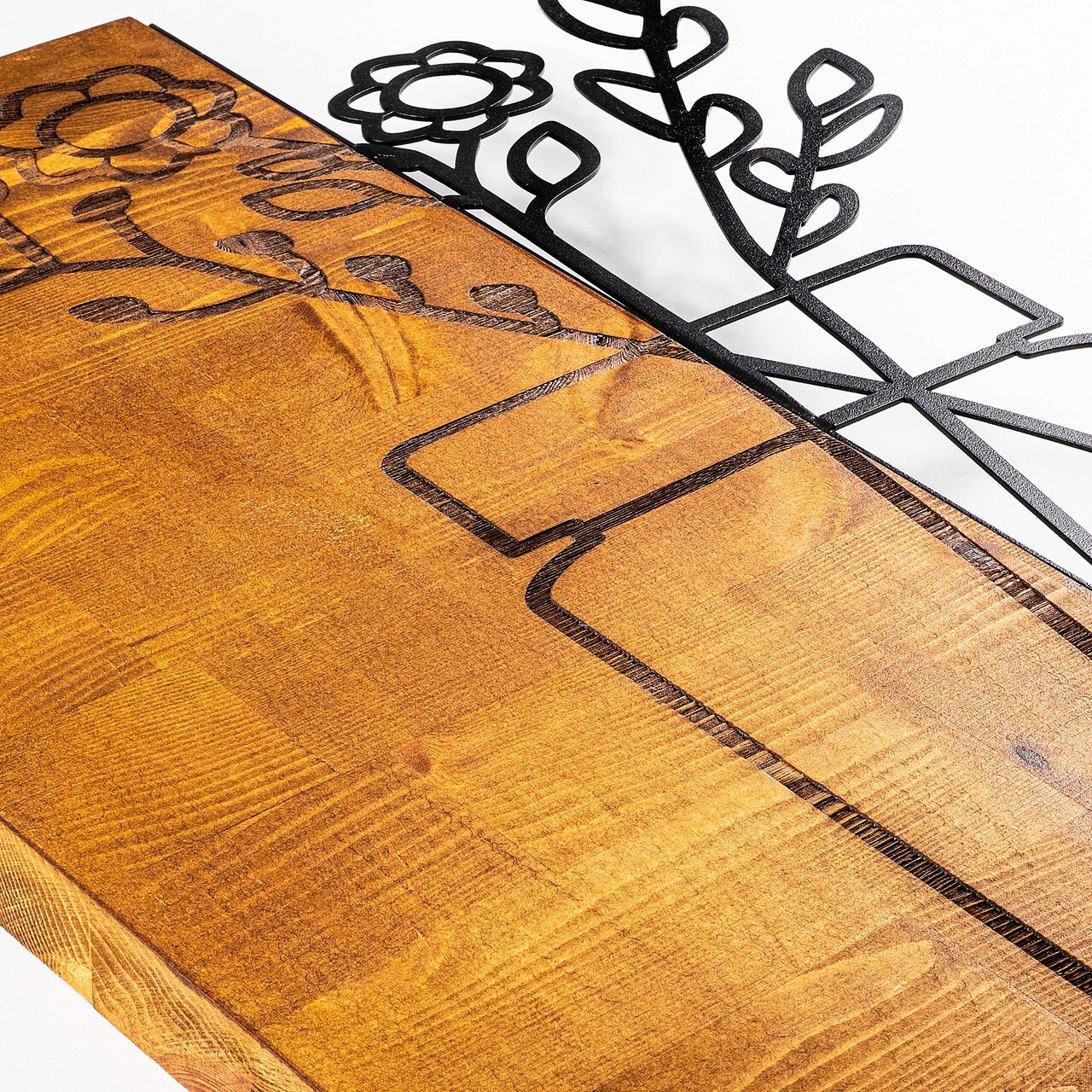 Decoratiune de perete, Cicek1, 50% lemn/50% metal, Dimensiune: 40 x 58 cm, Nuc / Negru