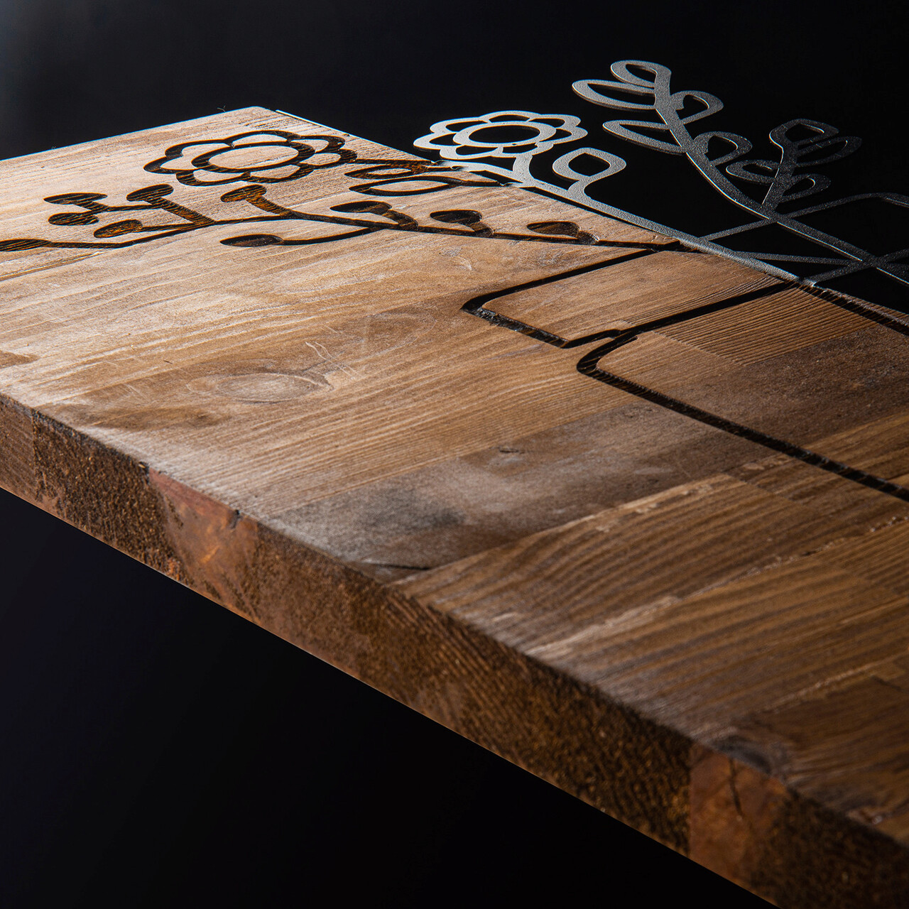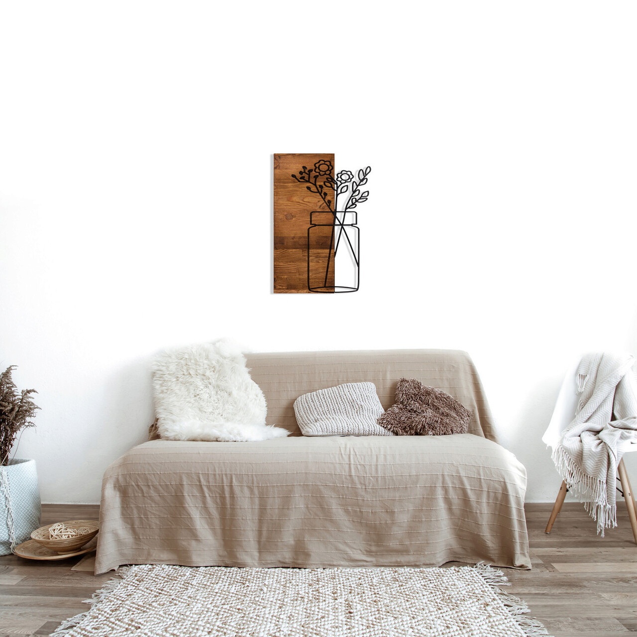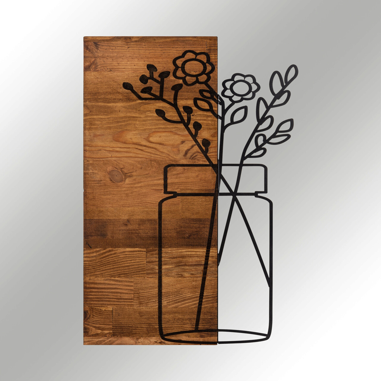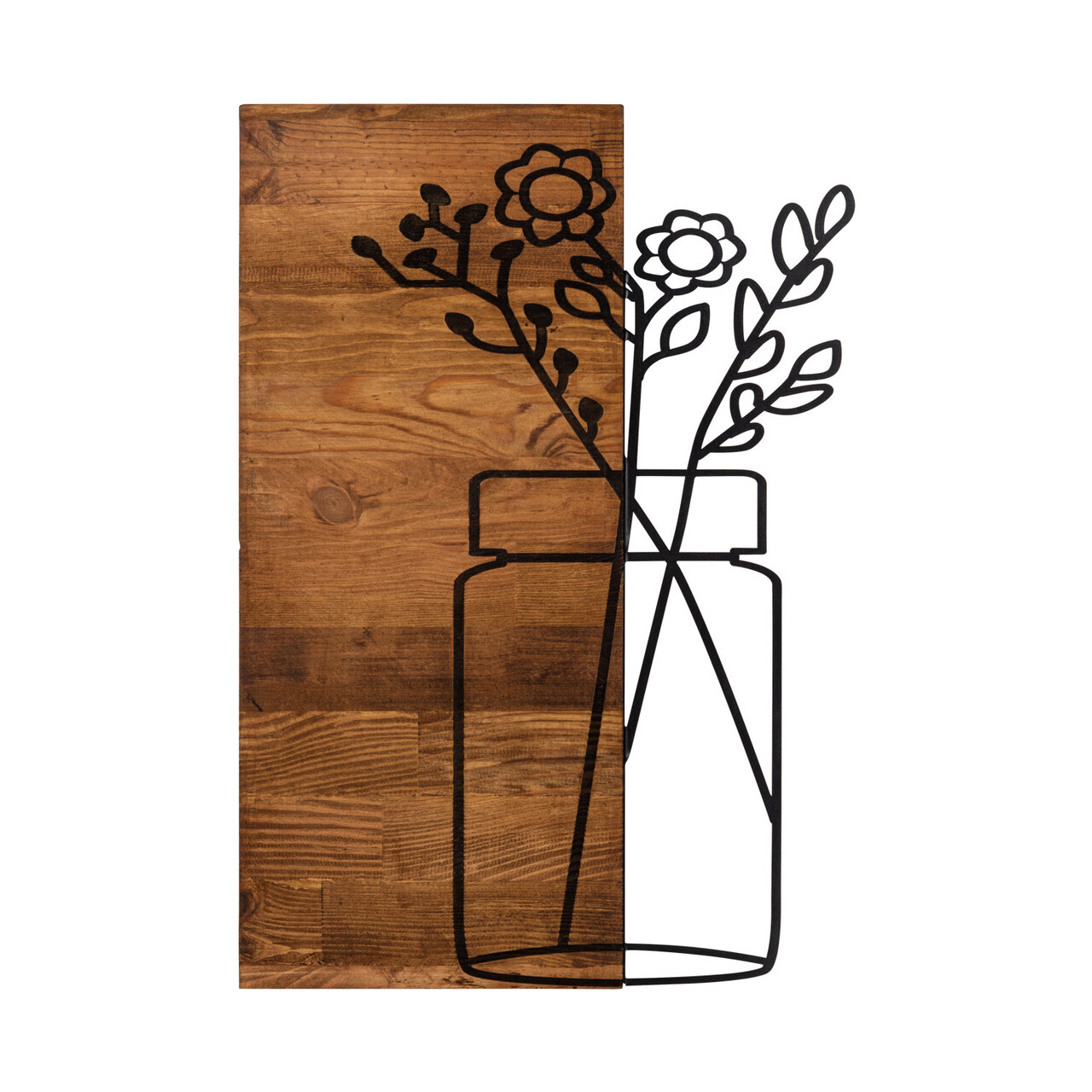 Decoratiune de perete, Cicek1, lemn/metal, 40 x 58 cm, negru/maro