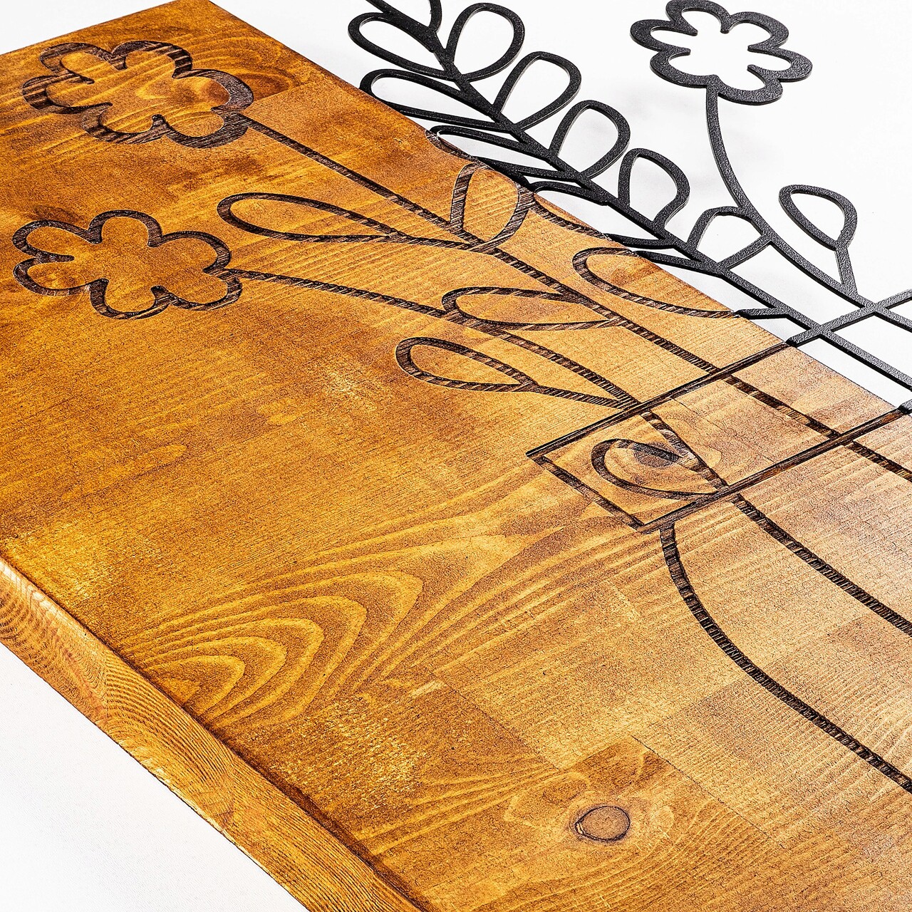 Decoratiune de perete, Cicek2, 50% lemn/50% metal, Dimensiune: 41 x 58 cm, Nuc / Negru