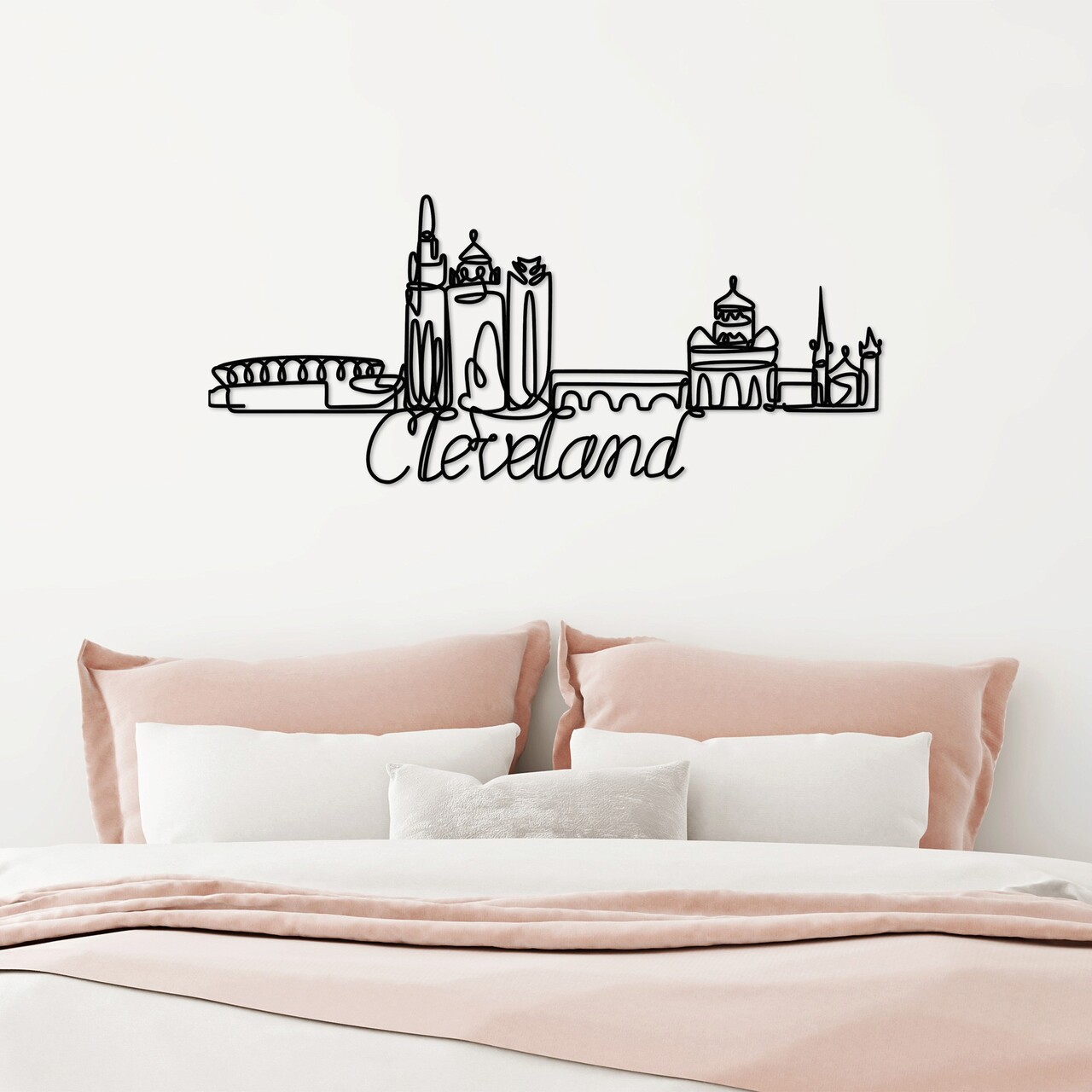 Decoratiune de perete, Cleveland, Metal, Grosime: 2 mm, Negru