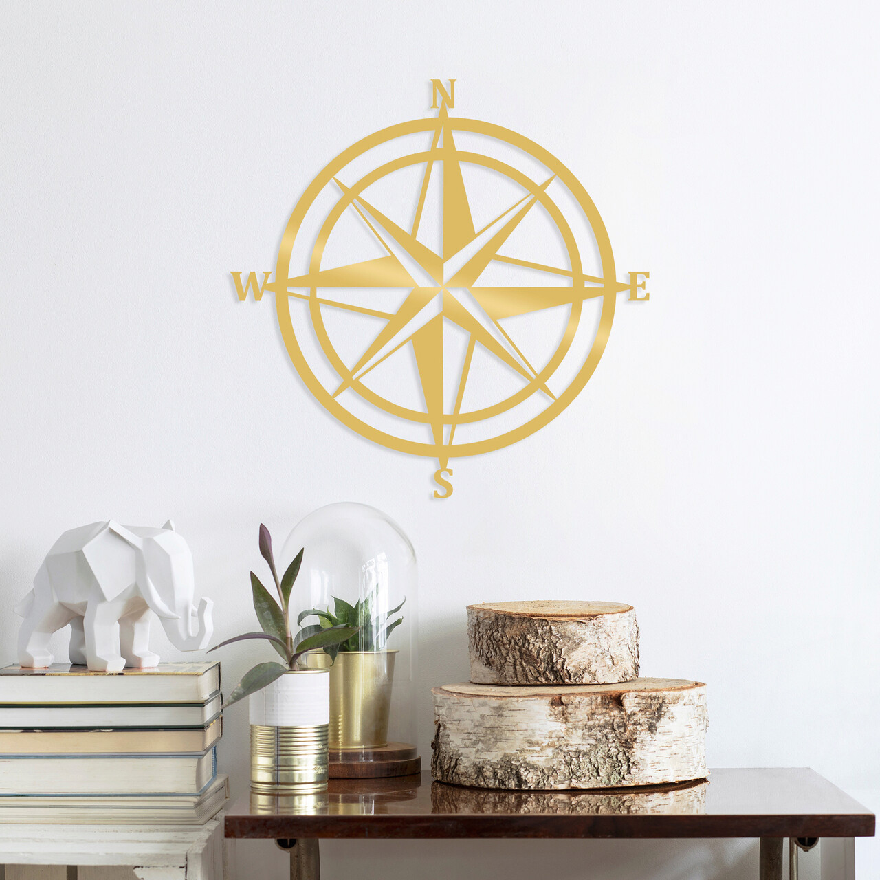 Decoratiune de perete, Compass, Metal, Dimensiune: 55 x 55 cm, Auriu
