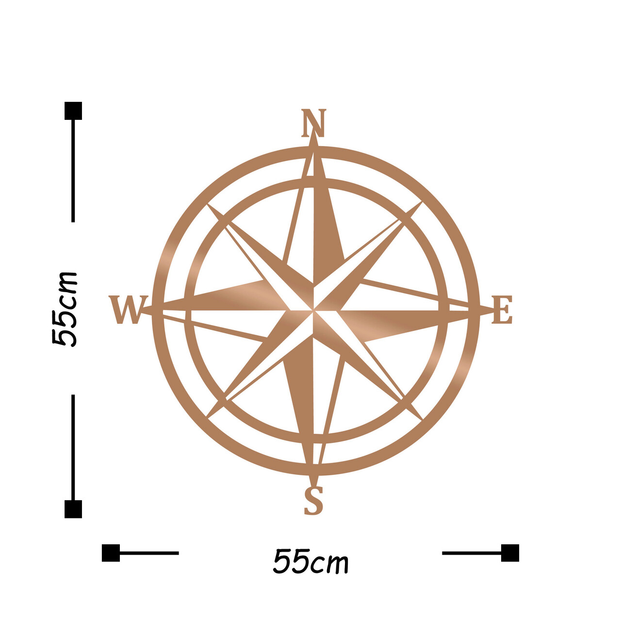 Decoratiune de perete, Compass, Metal, Dimensiune: 55 x 55 cm, Cupru