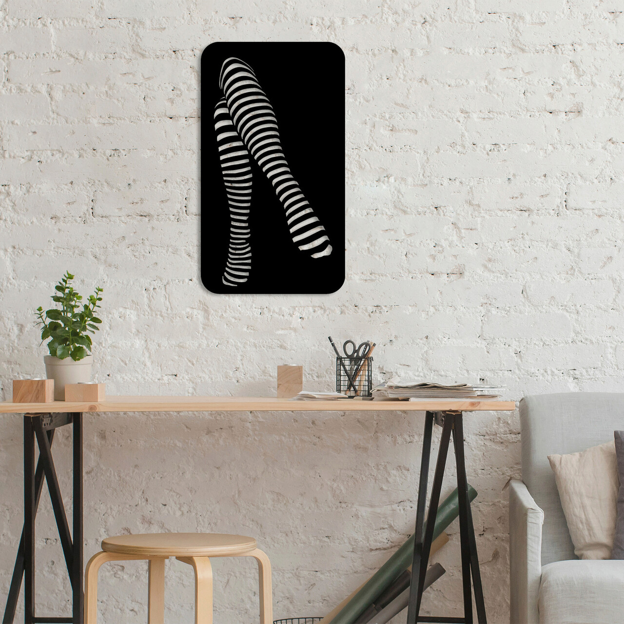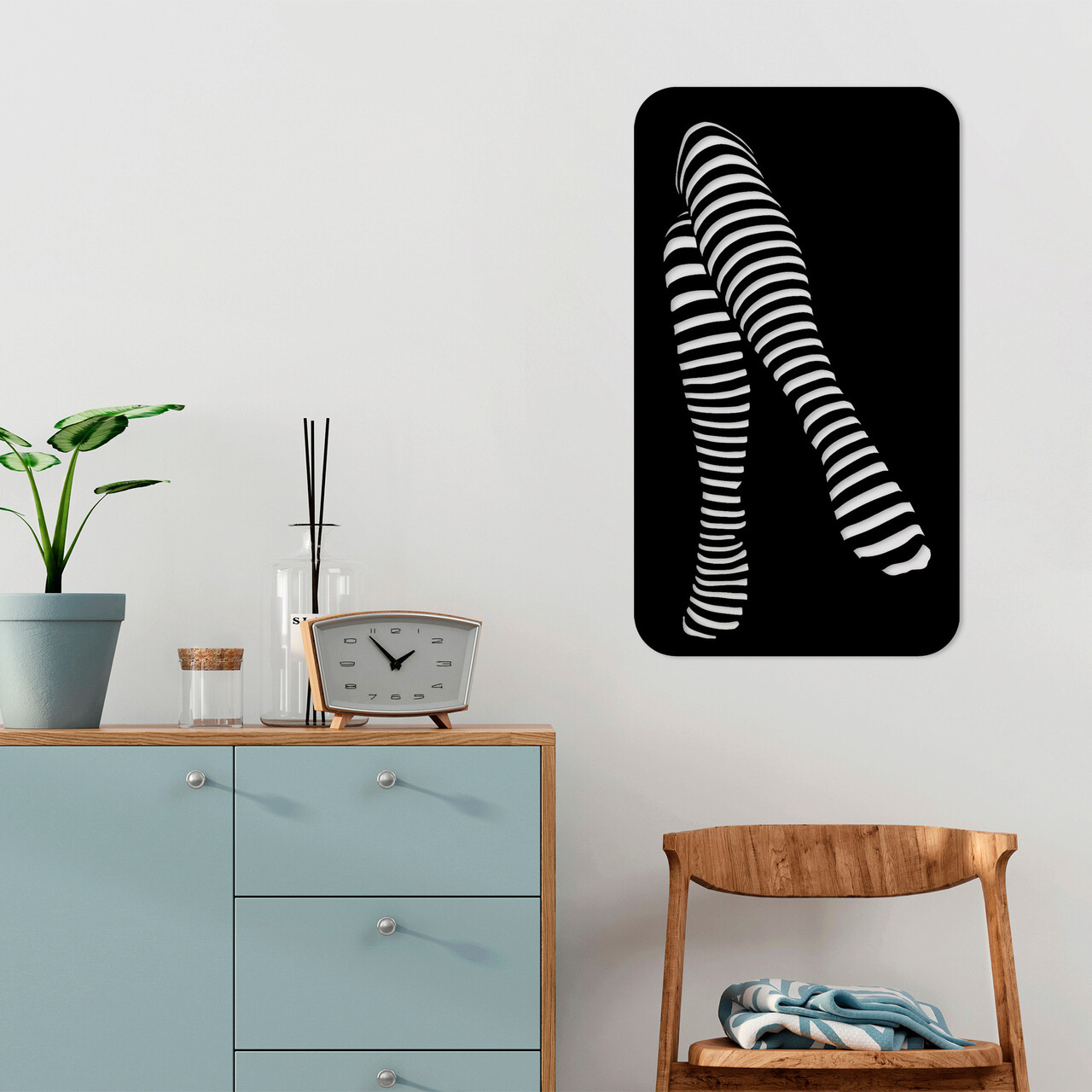 Decoratiune de perete, Cross One'S Legs, Metal, Dimensiune: 40 x 1,5 x 70 cm, Negru