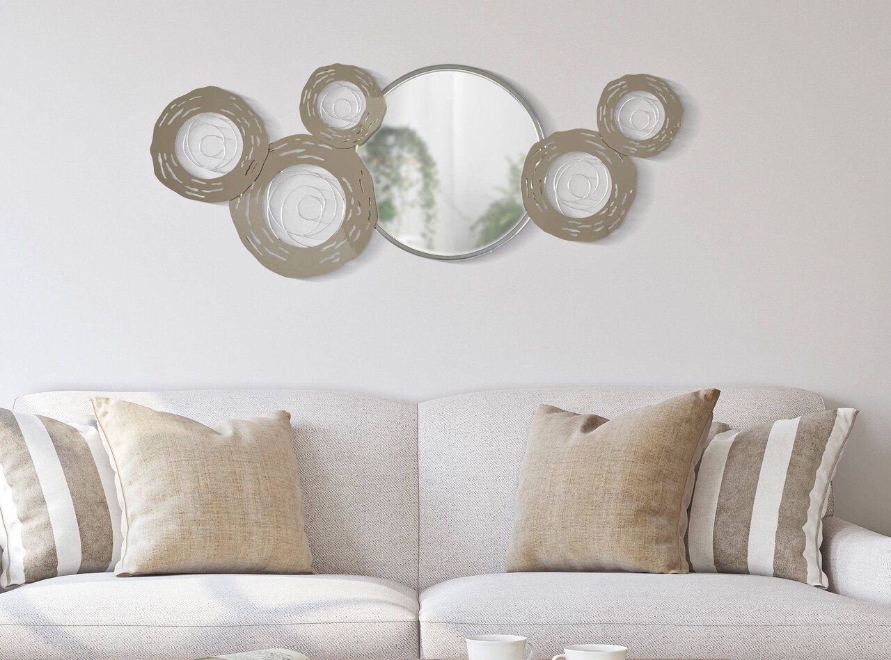 Decoratiune de perete cu oglinda Hop, Mauro Ferretti, 106x48 cm, fier/MDF/oglinda, argintiu