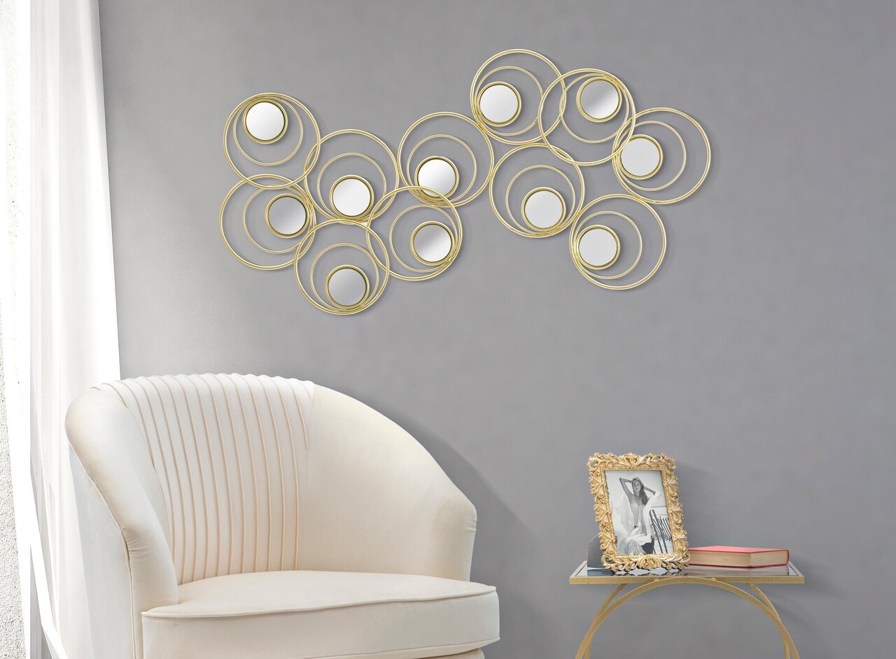 Decoratiune de perete cu oglinda Simply 3D, Mauro Ferretti, 90x55 cm, fier, auriu
