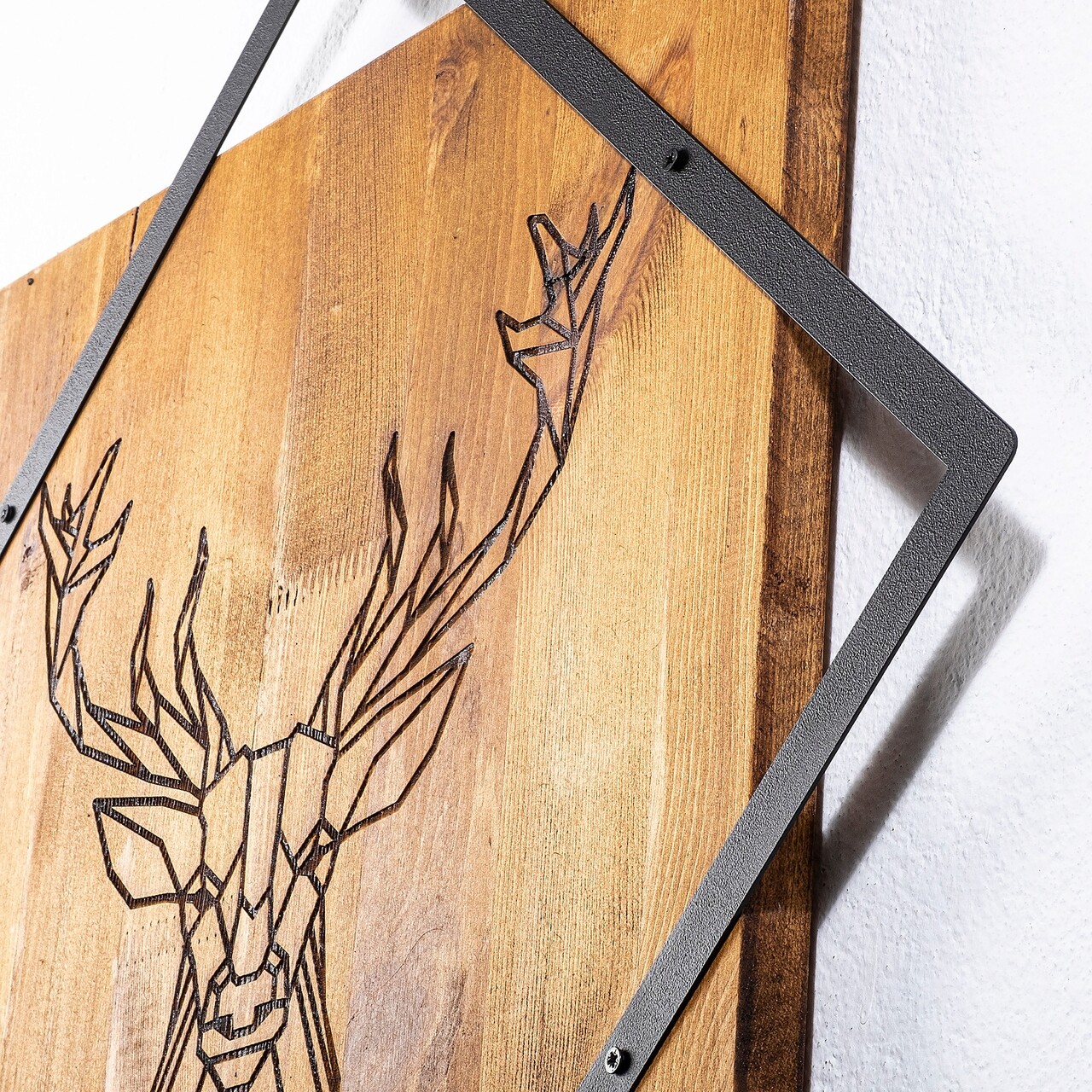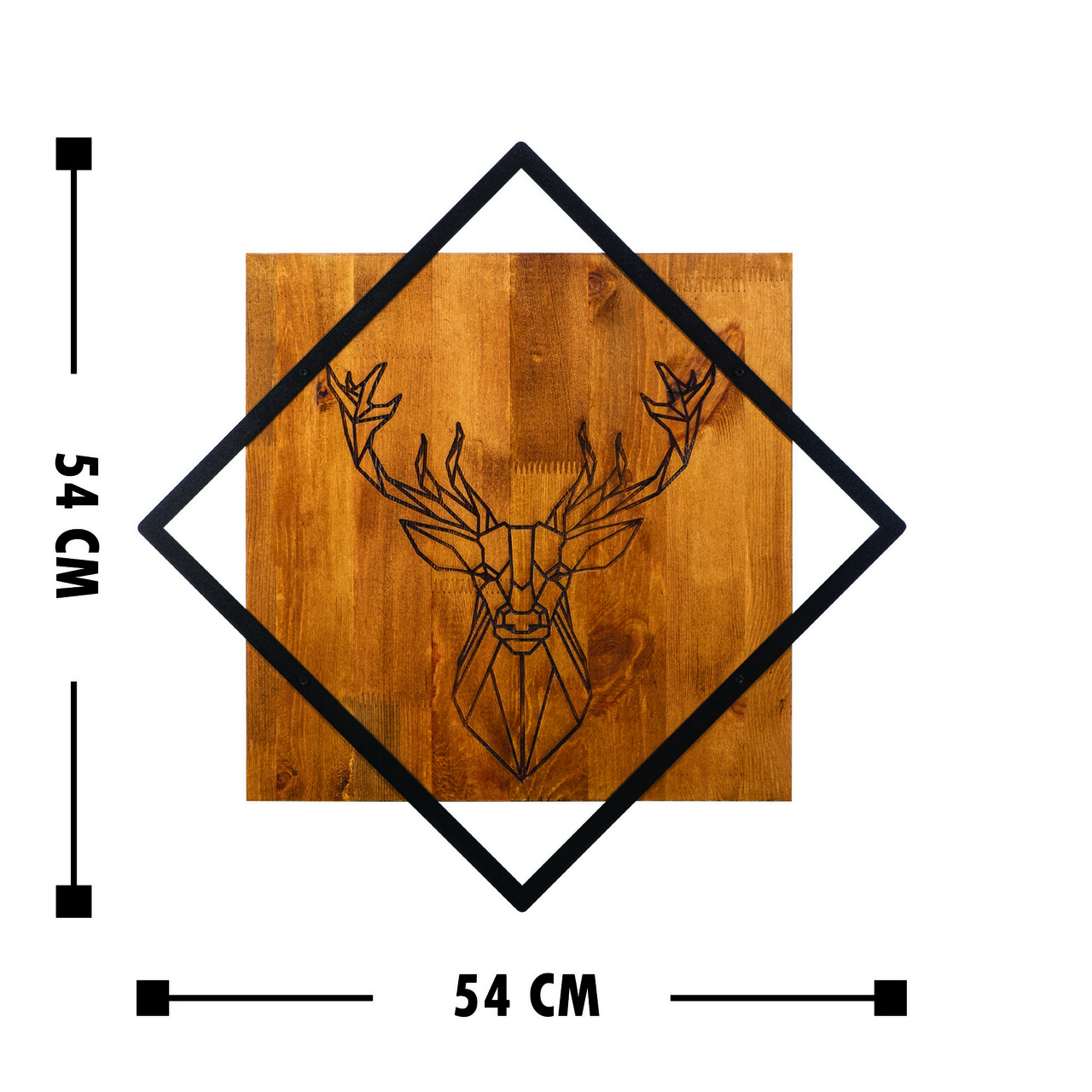 Decoratiune de perete, Deer, 50% lemn/50% metal, Dimensiune: 54 x 54 cm, Nuc / Negru