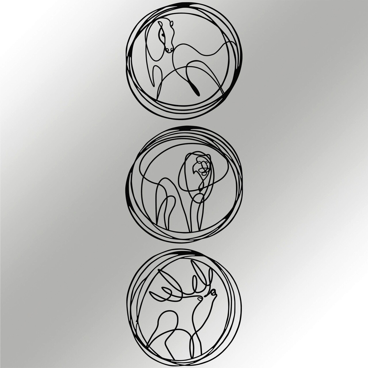 Decoratiune de perete, Deer Lion Horse, metal, 152 x 50 cm, negru
