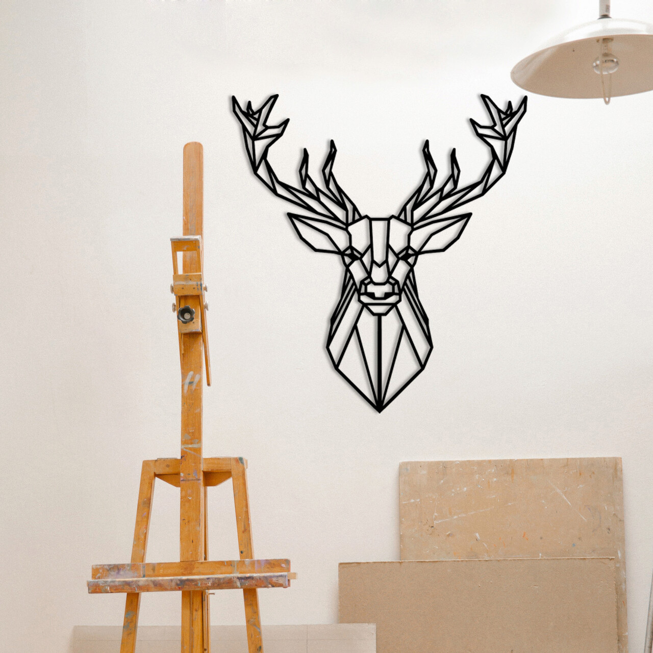 Decoratiune de perete, Deer Metal Decor 2, metal, 60 x 65 cm, negru