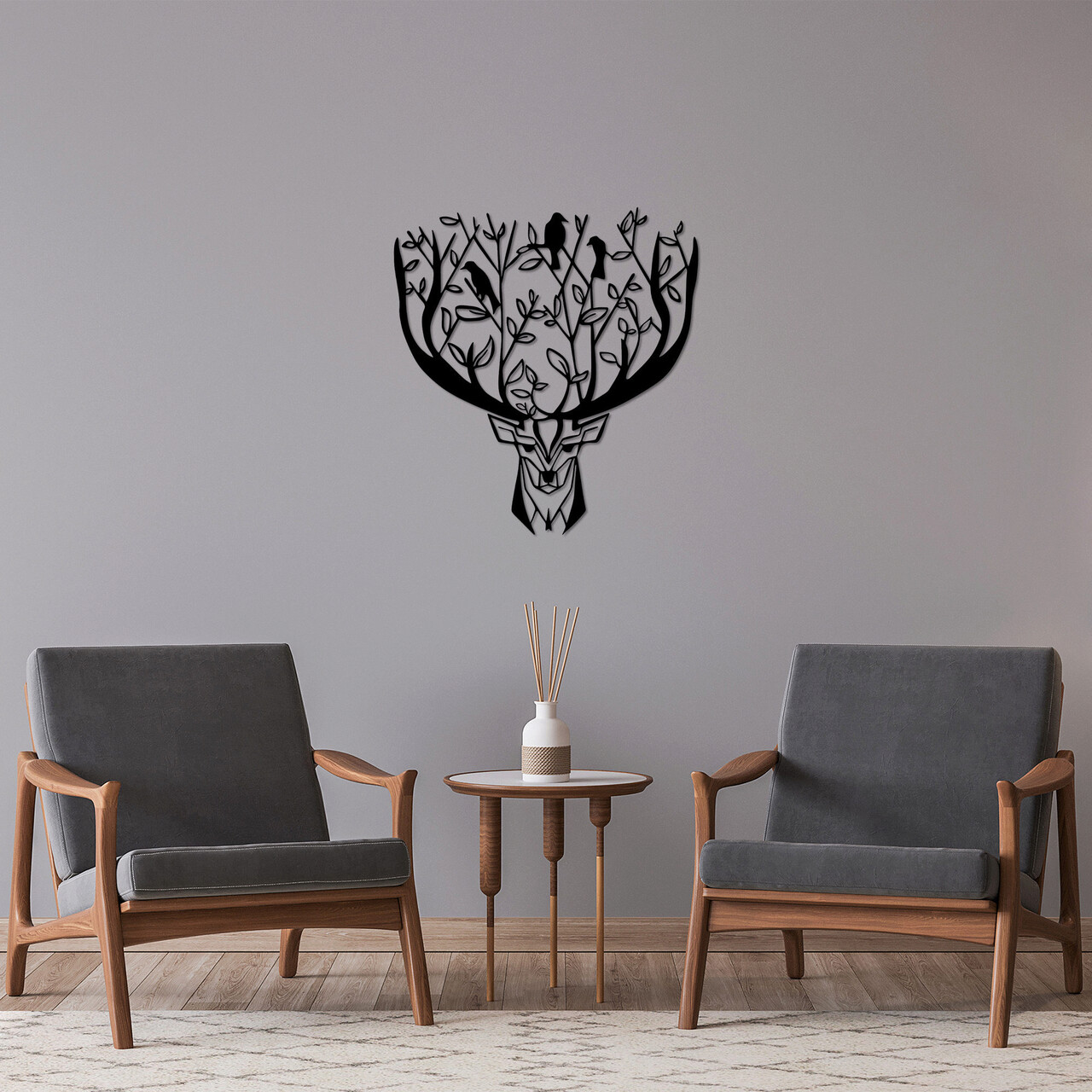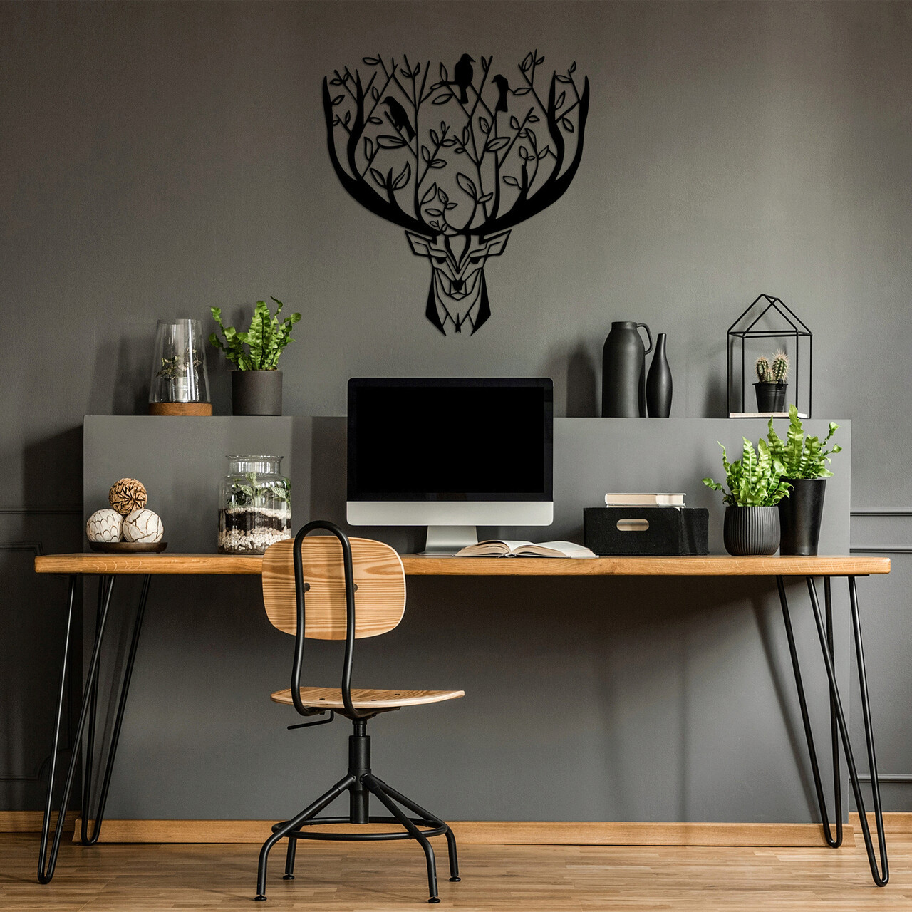 Decoratiune de perete, Deer, Metal, Dimensiune: 66 x 70 cm, Negru