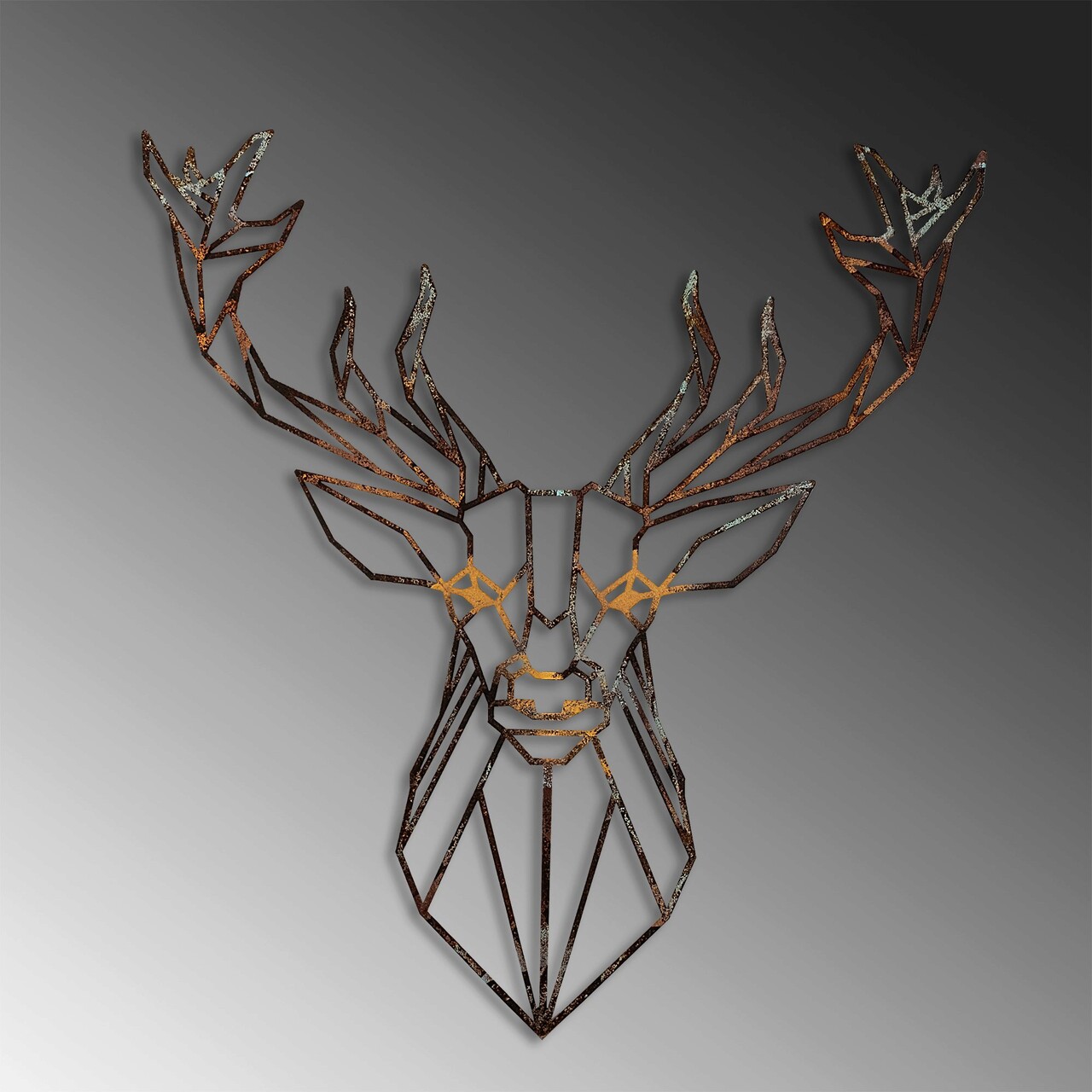 Decoratiune de perete, Deer, Metal, Latime: 60 cm / Inaltime: 65 cm, Multicolor