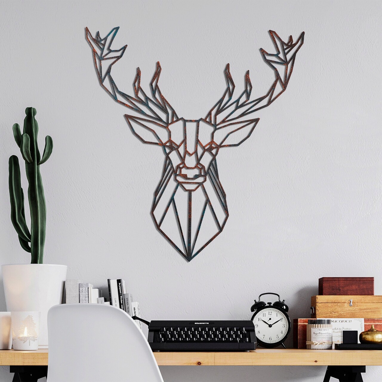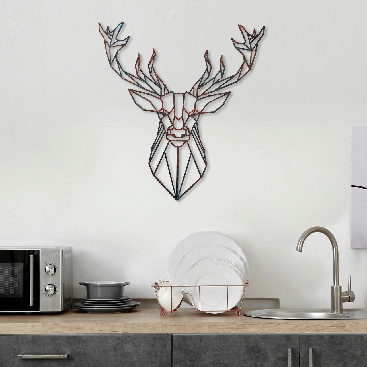 Decoratiune de perete, Deer, Metal, Latime: 60 cm / Inaltime: 65 cm, Multicolor