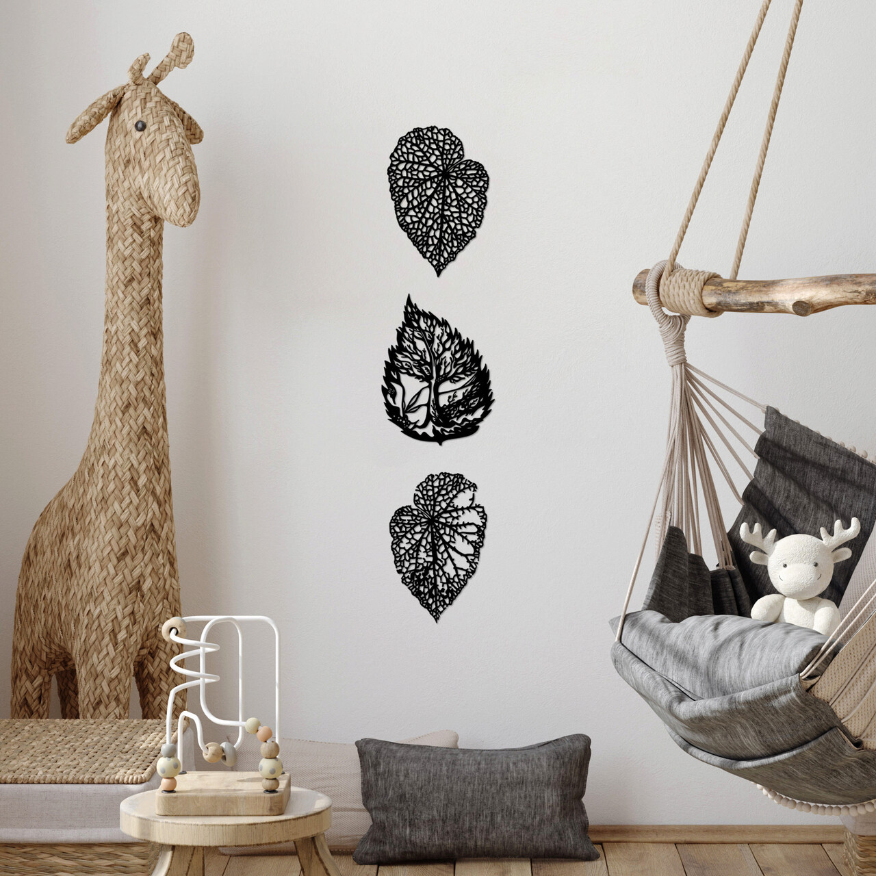 Decoratiune de perete, Detailed Leaves, Metal, 22 x 33 cm, Negru