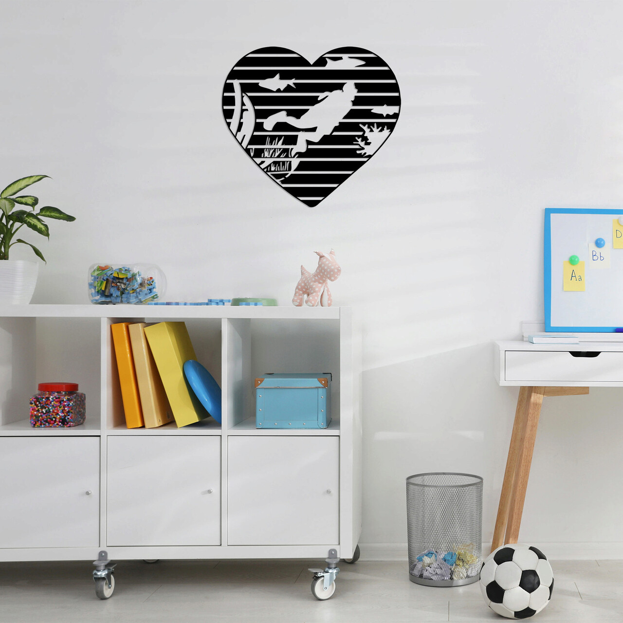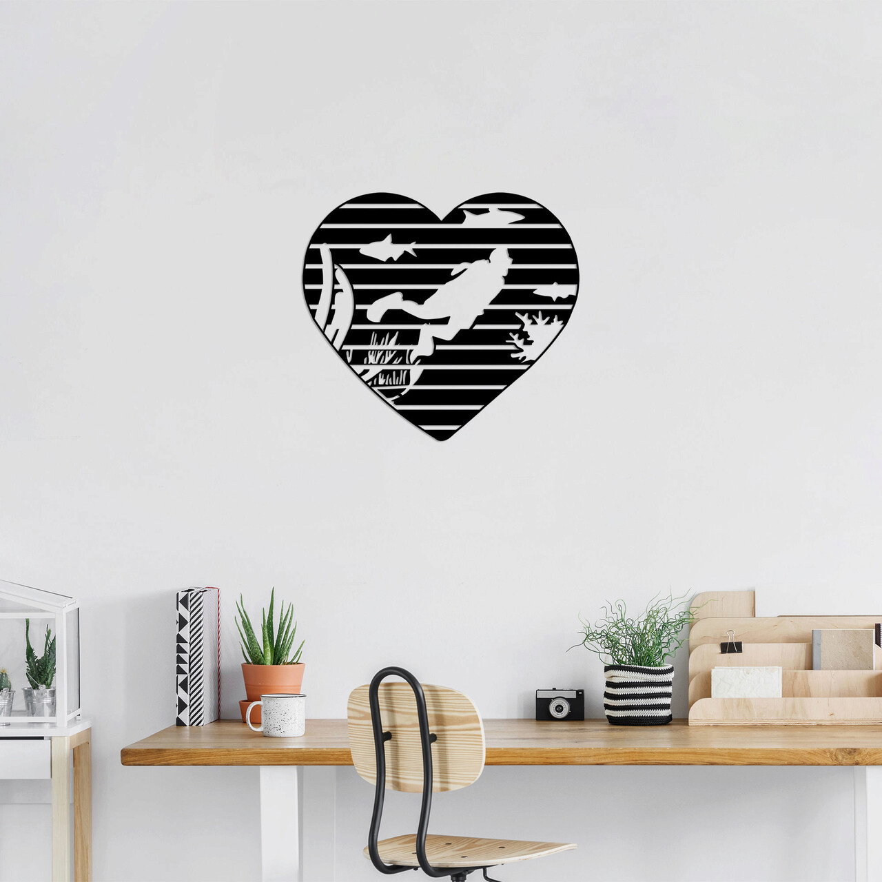 Decoratiune de perete, Diver, Metal, Dimensiune: 78 x 70 cm, Negru