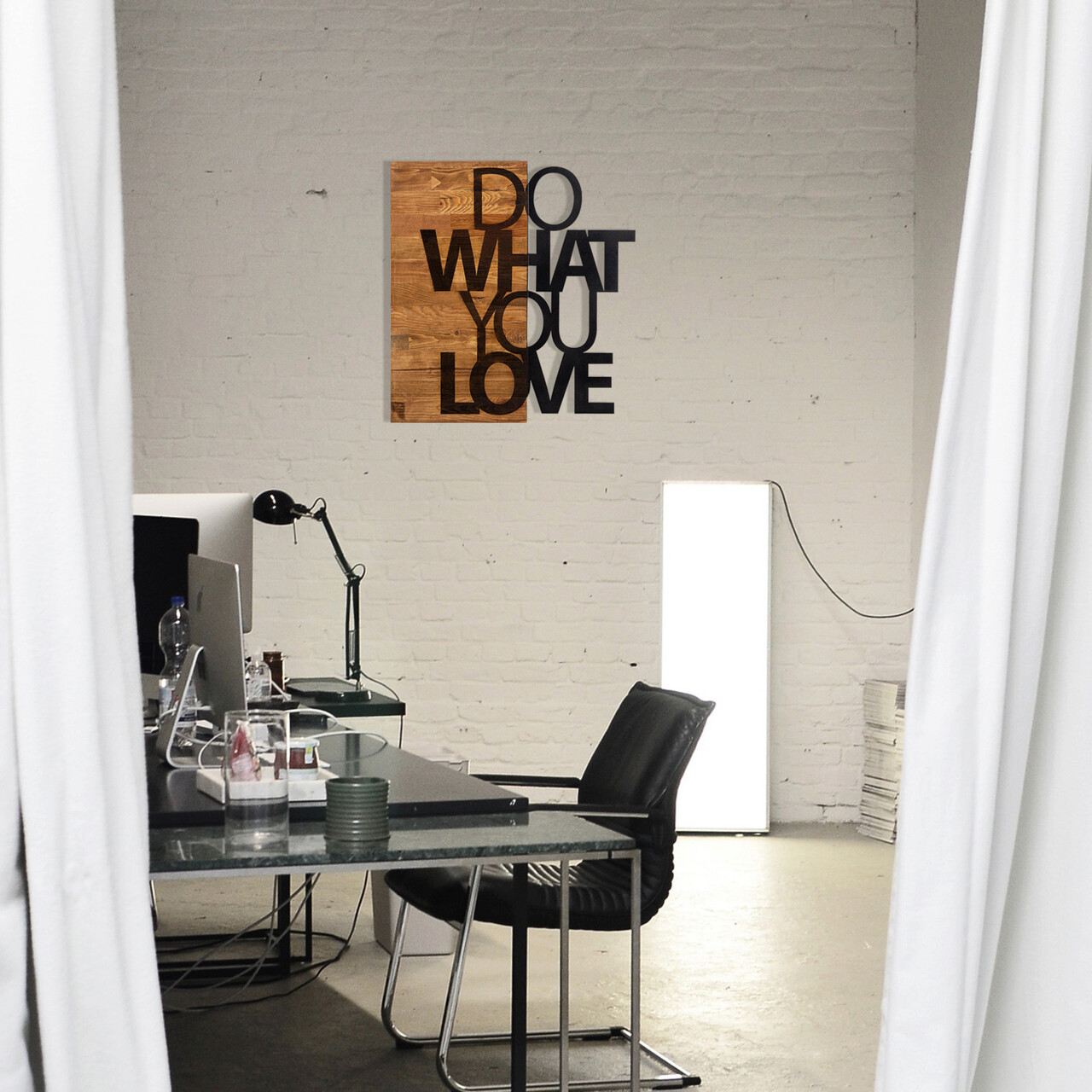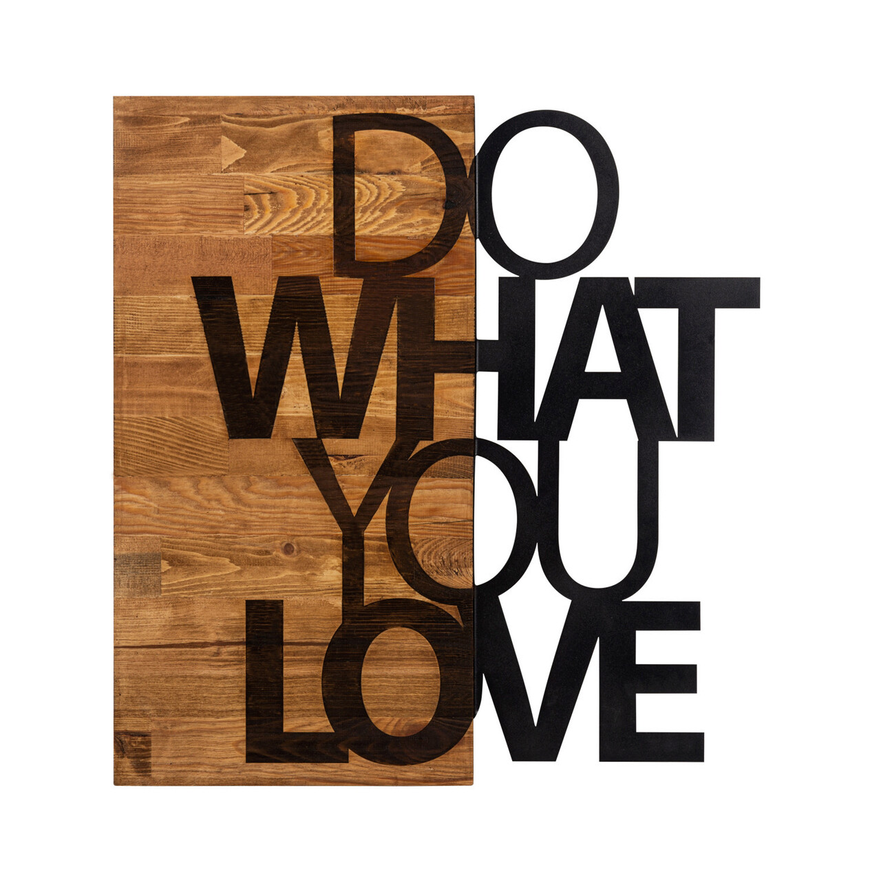 Decoratiune de perete, Do What You Love, lemn/metal, 54 x 58 cm, negru/maro