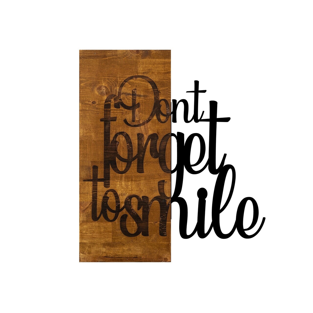 Decoratiune de perete, Dont Forget To Smile, 50% lemn/50% metal, Dimensiune: 47 x 58 cm, Nuc / Negru