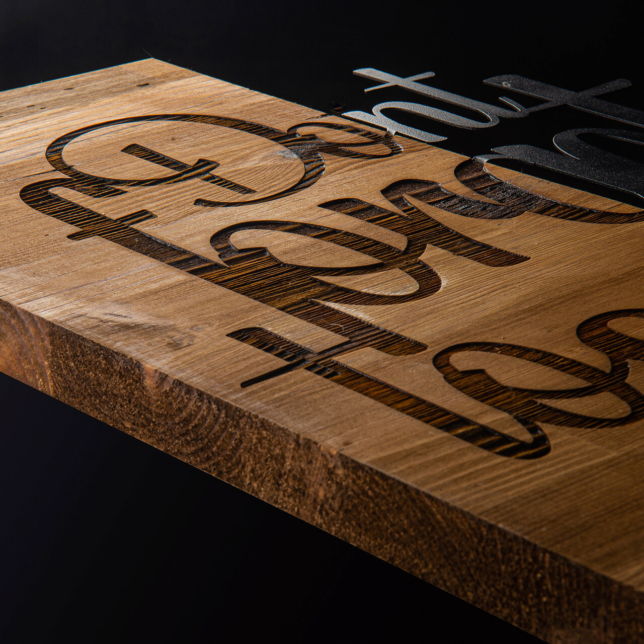 Decoratiune de perete, Dont Forget To Smile, lemn/metal, 47 x 58 cm, negru/maro