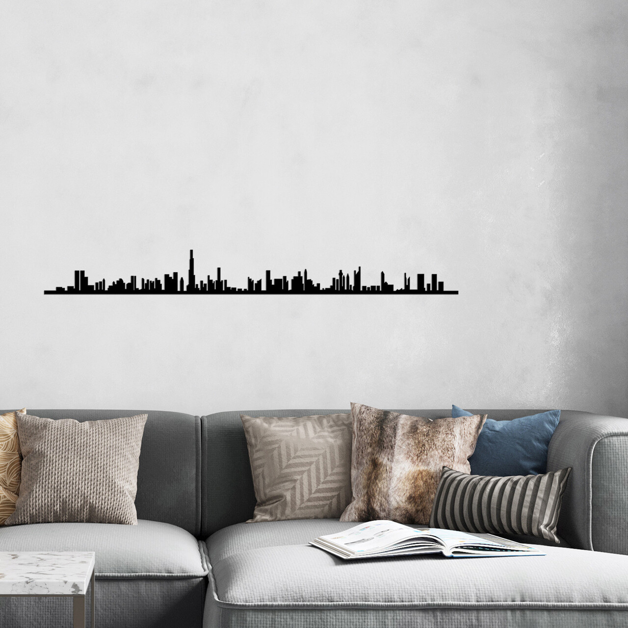 Decoratiune de perete, Dubai Skyline, Metal, Dimensiune: 120 x 13 cm, Negru