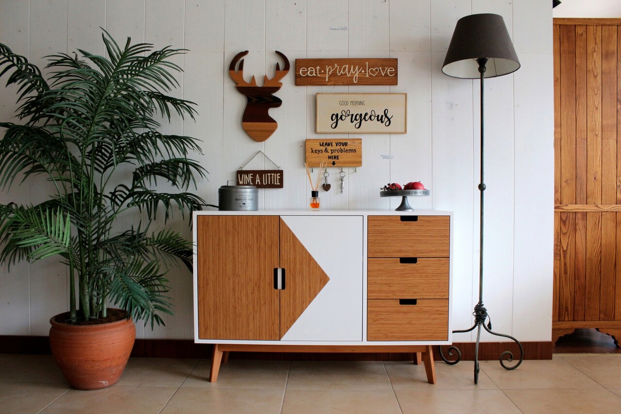 Decoratiune de perete, Eat Pray Love, 15x55x1.8 cm, Nuc deschis