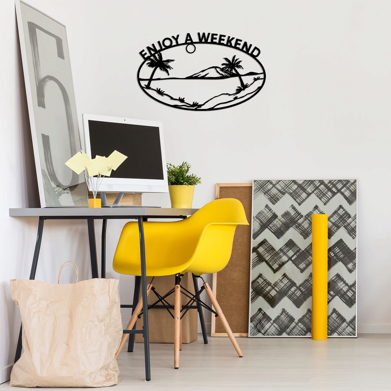 Decoratiune de perete, Enjoy A Weekend, Metal, Dimensiune: 70 x 43 cm, Negru