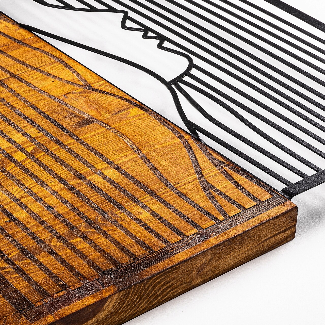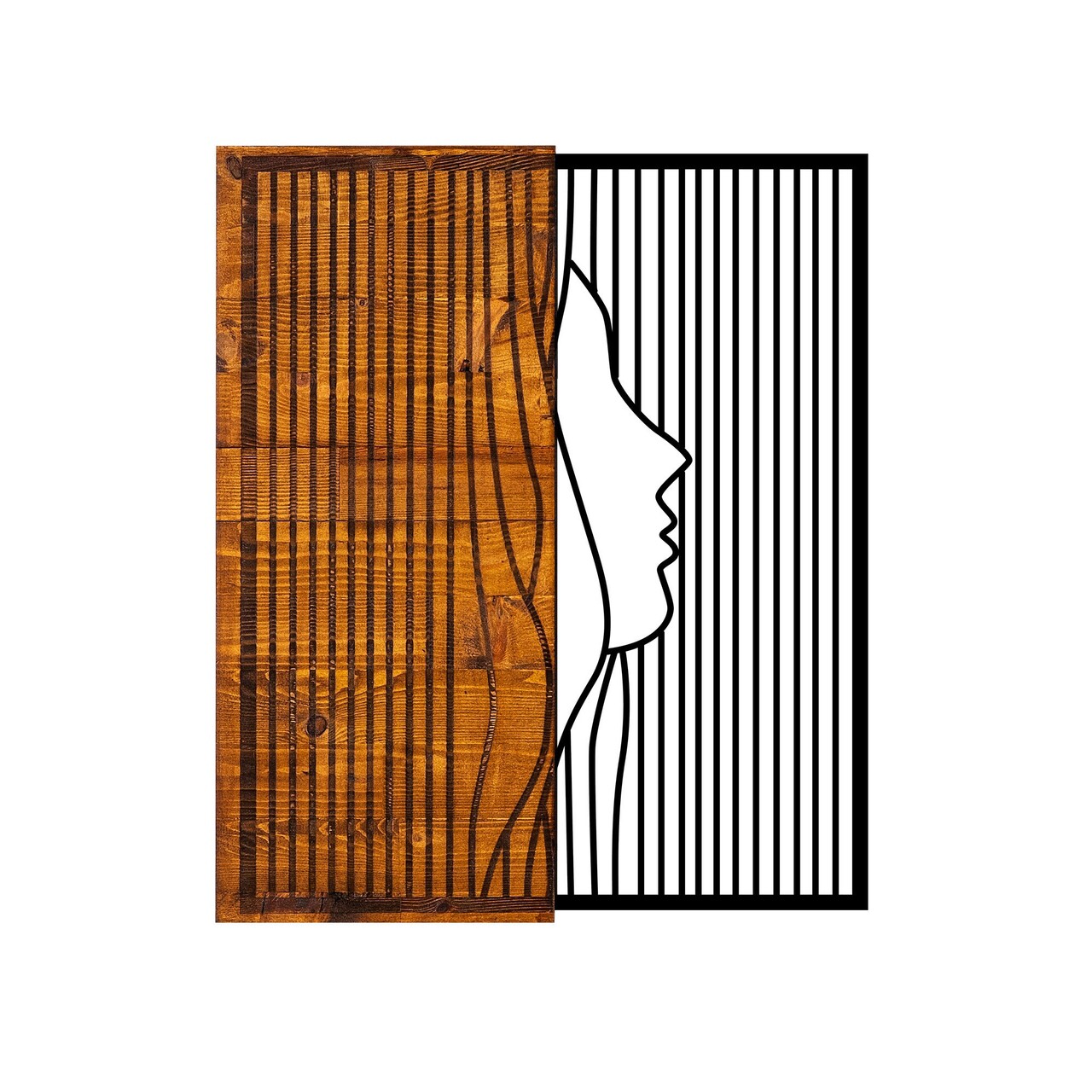 Decoratiune de perete, Esaret, 50% lemn/50% metal, Dimensiune: 48 x 58 cm, Nuc / Negru