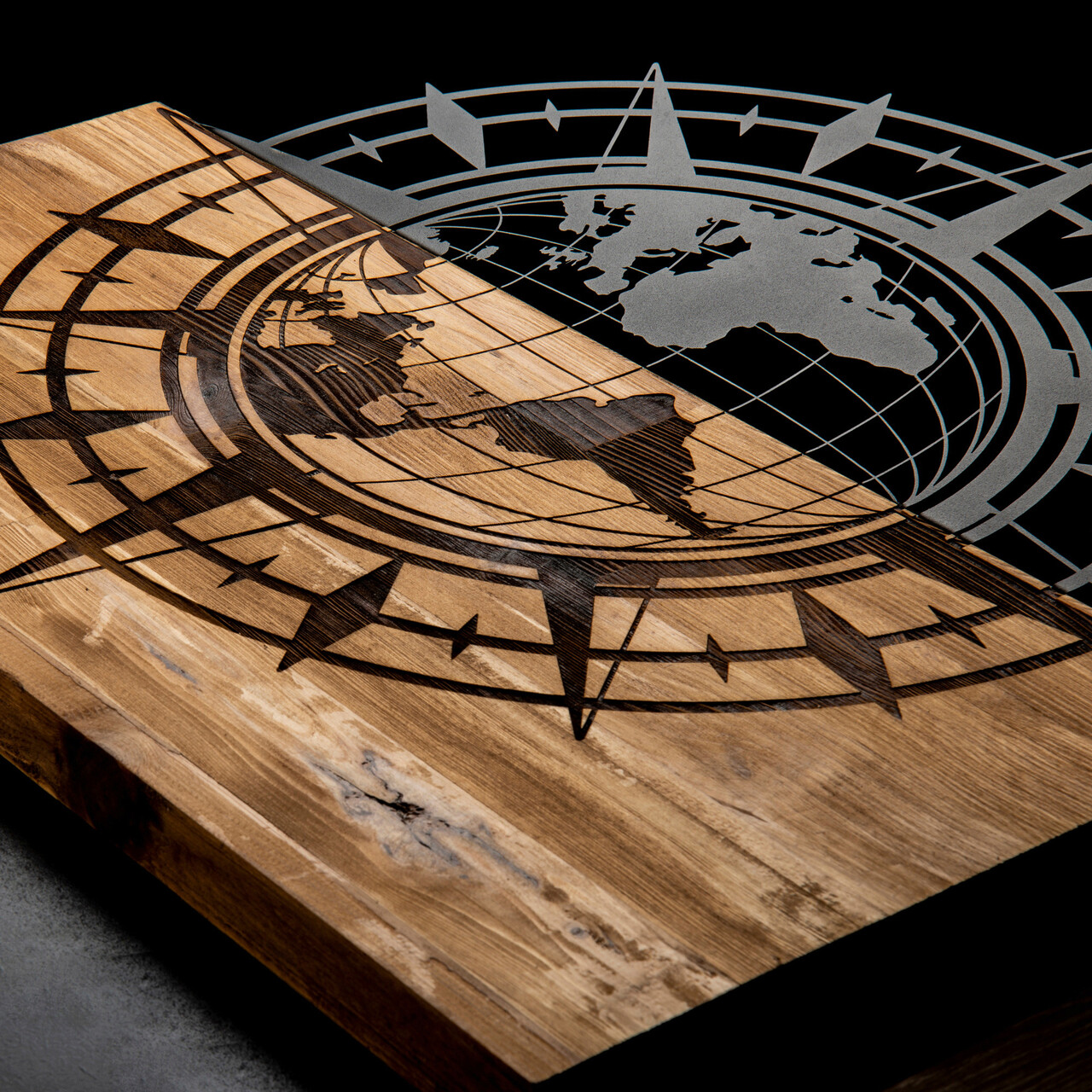 Decoratiune de perete, Esila, lemn/metal, 57 x 58 cm, negru/maro