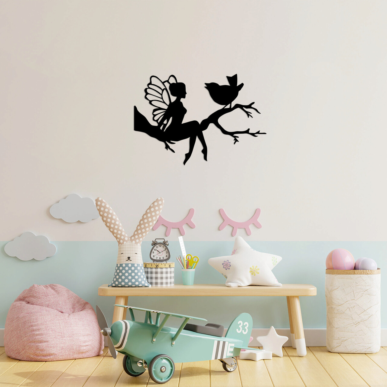Decoratiune de perete, Fairy, Metal, Dimensiune: 70 x 48 cm, Negru