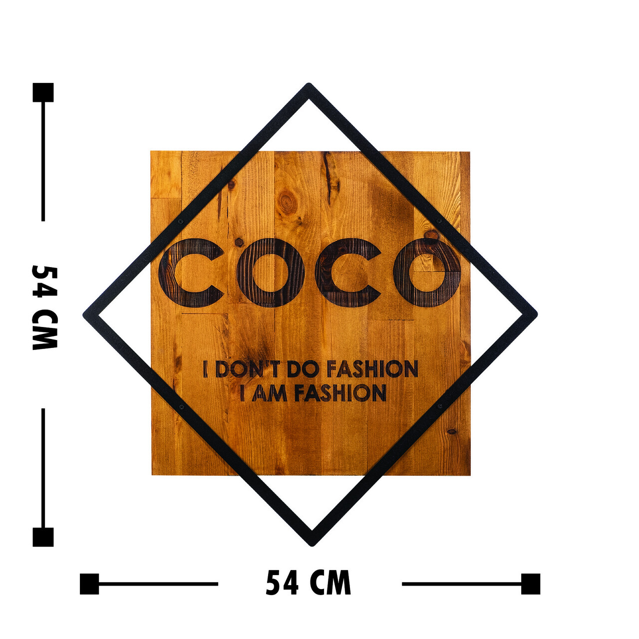 Decoratiune de perete, Fashion, 50% lemn/50% metal, Dimensiune: 54 x 54 cm, Nuc / Negru