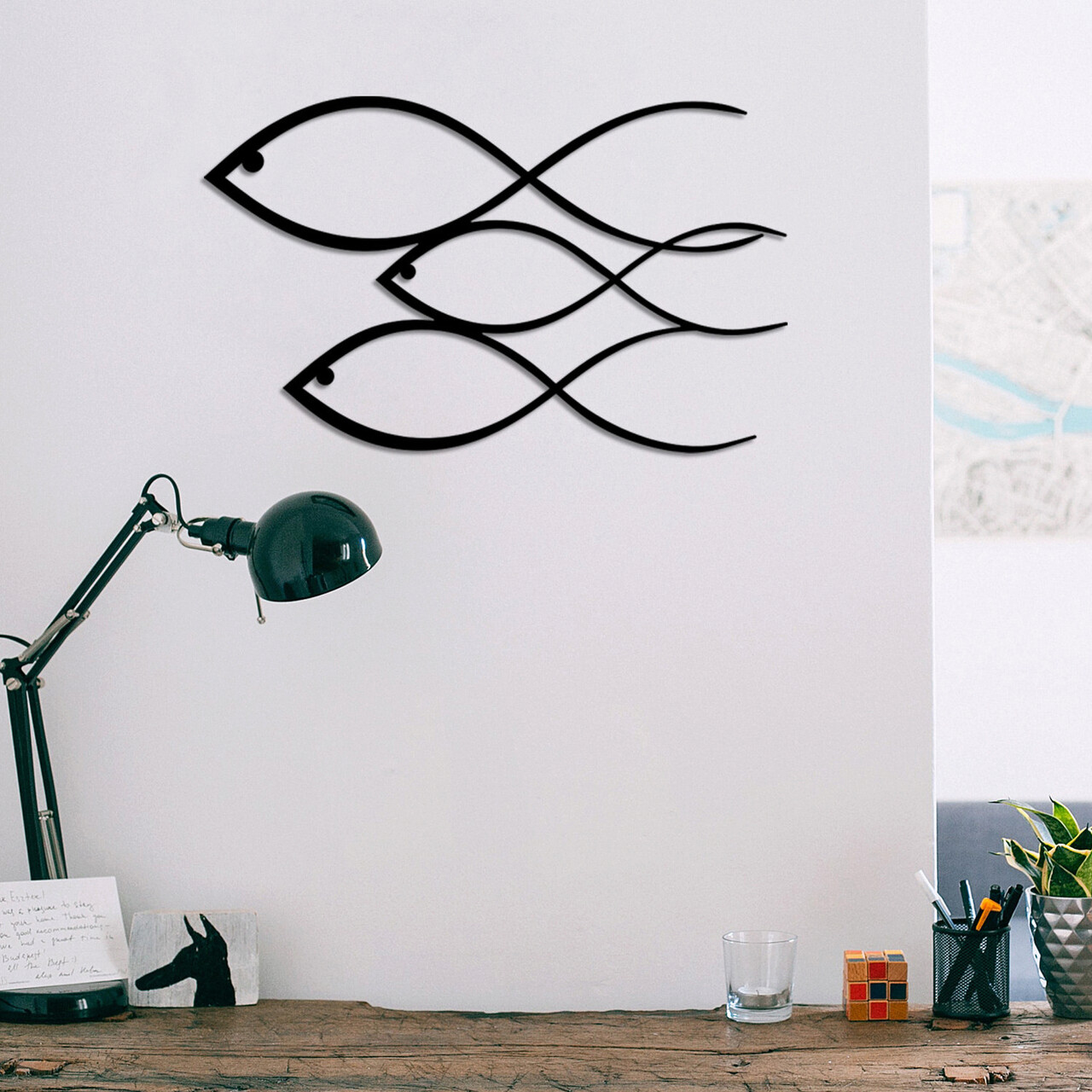 Decoratiune de perete, Fish, metal, 50 x 30 cm, negru