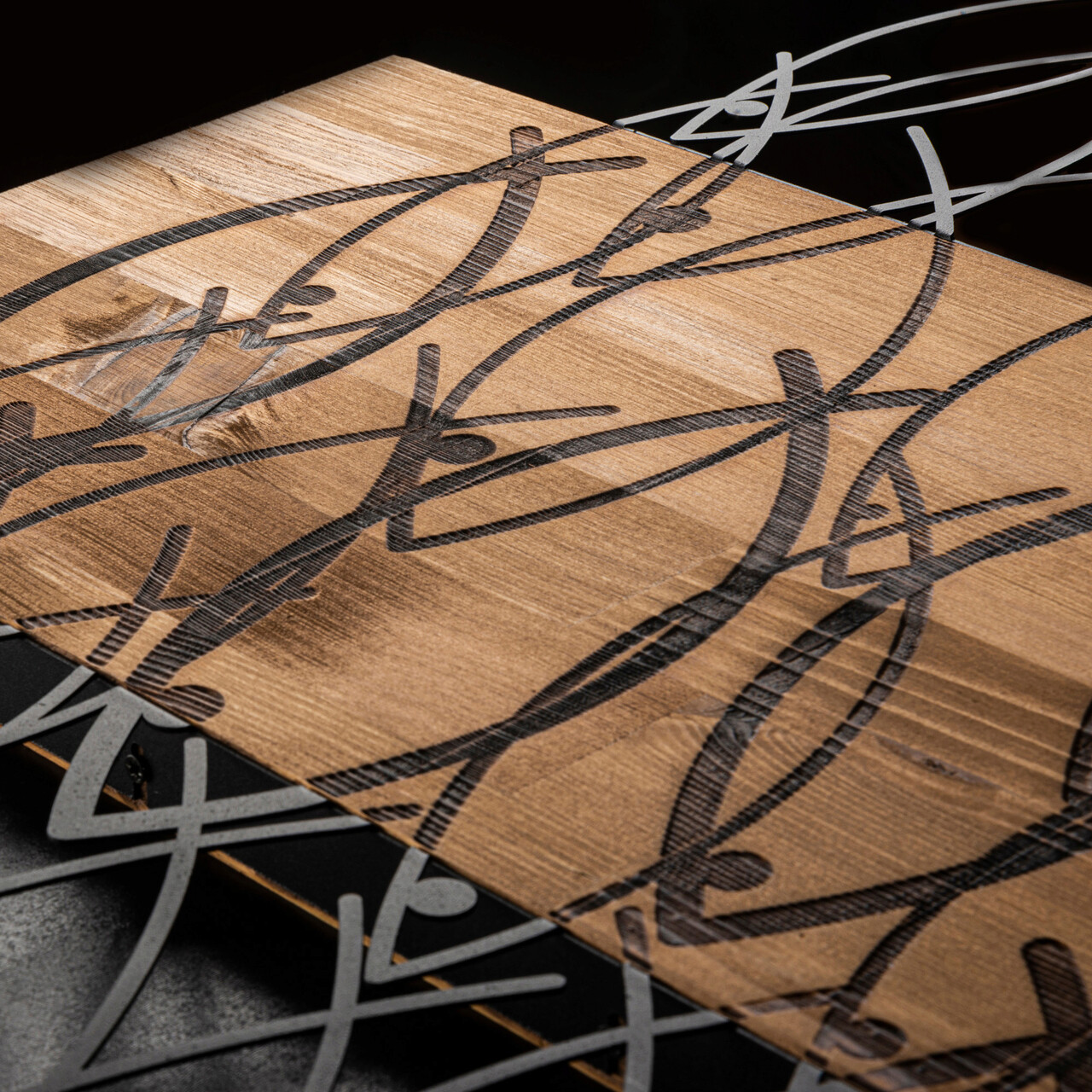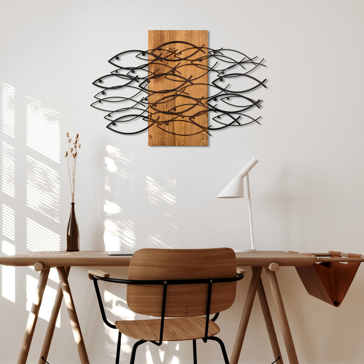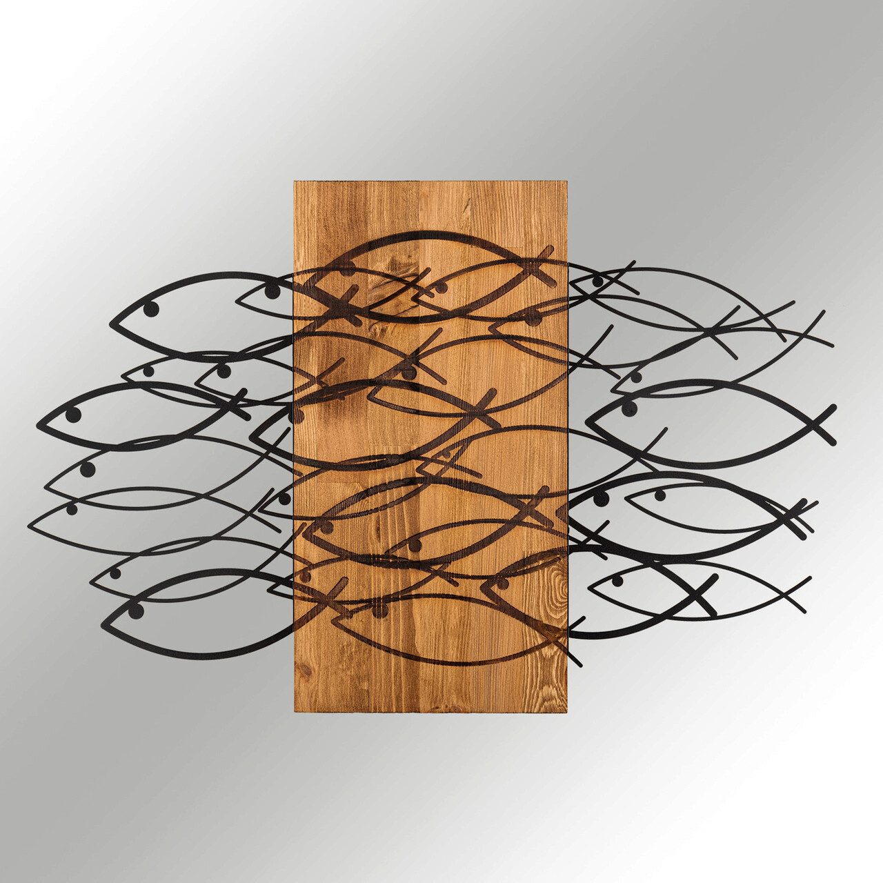 Decoratiune de perete, Fish, Metal, Cadru: 100% LEMN (grosime: 3 cm), Nuc negru