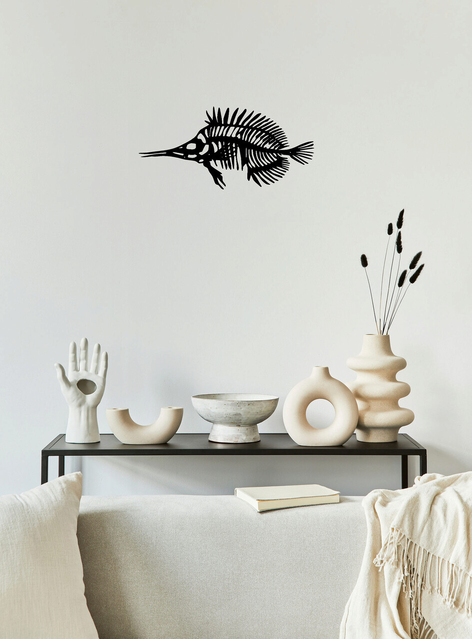 Decoratiune de perete, Fish, Metal, Dimensiune: 35 x 20 cm, Negru