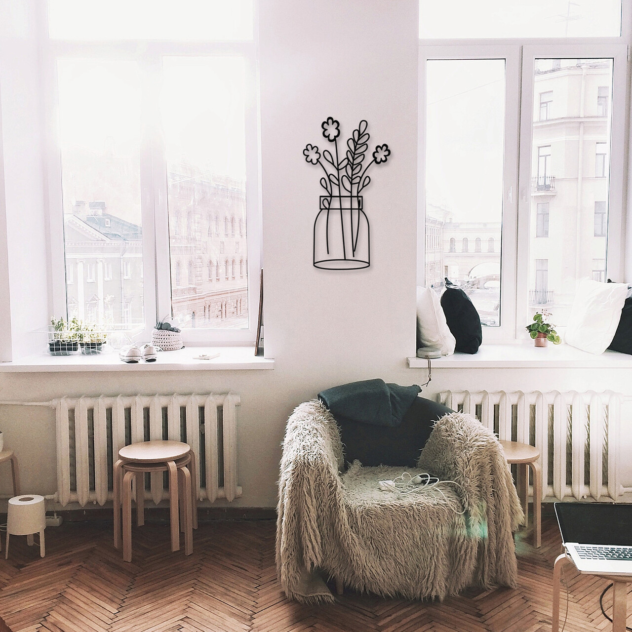 Decoratiune de perete, Flower 3 Metal Wall Decor, metal, 40 x 70 cm, negru