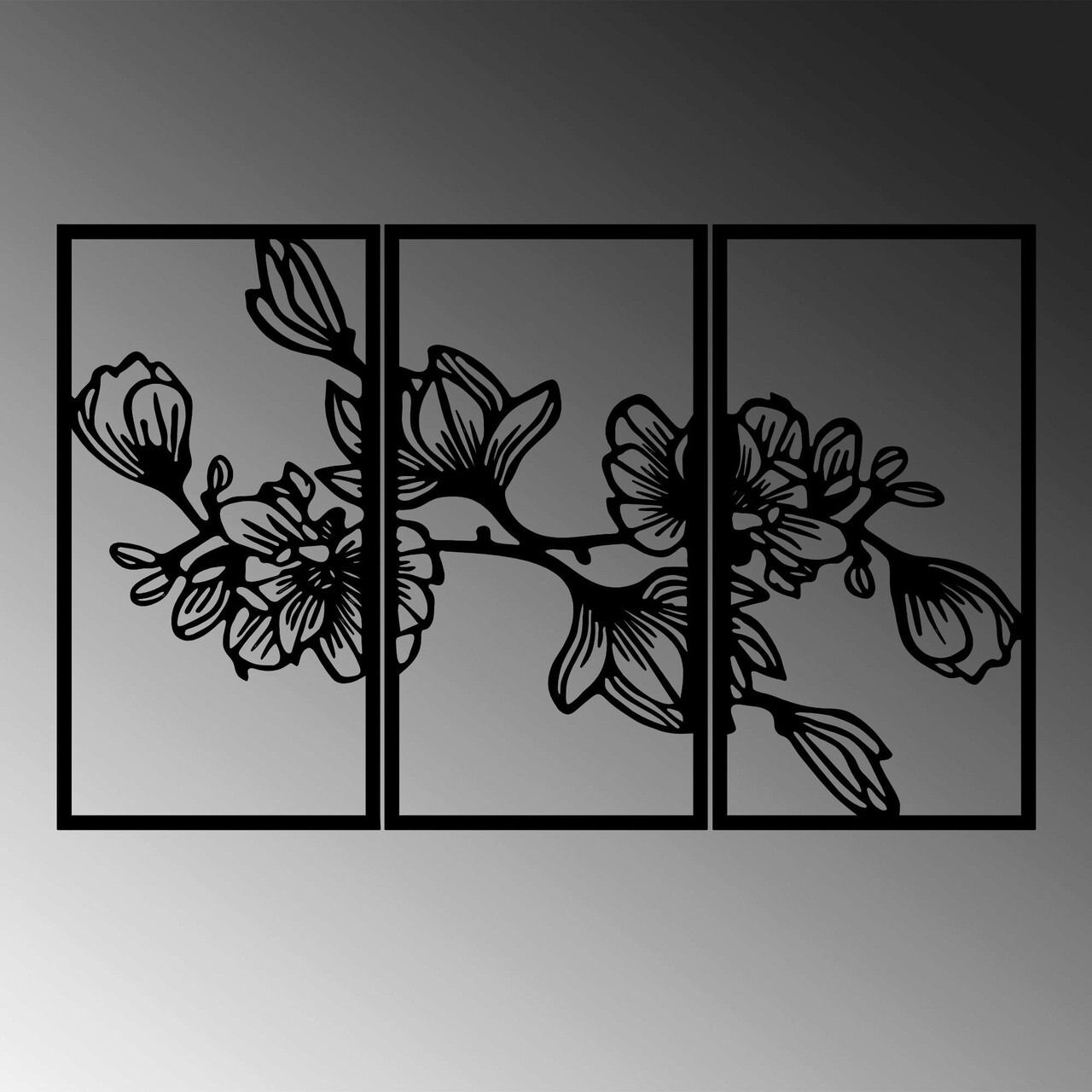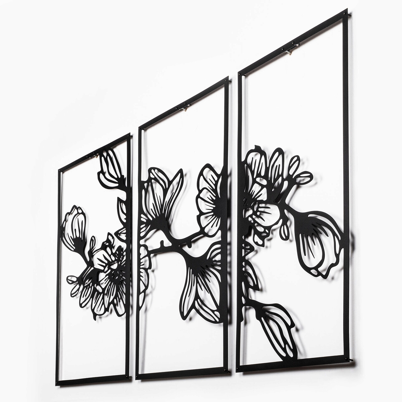 Decoratiune de perete, Flower 8, Metal, 37 x 65 cm, 3 piese, Negru