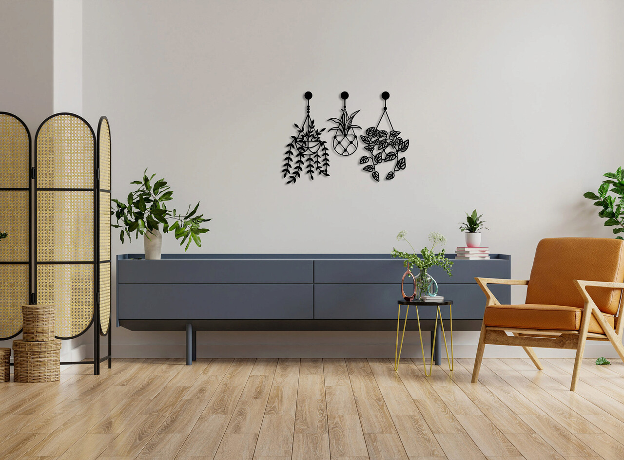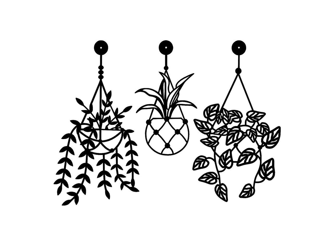 Decoratiune de perete, Flower Cluster, Metal, Flower 1: 20 x 35 cm, 1 piese, Negru