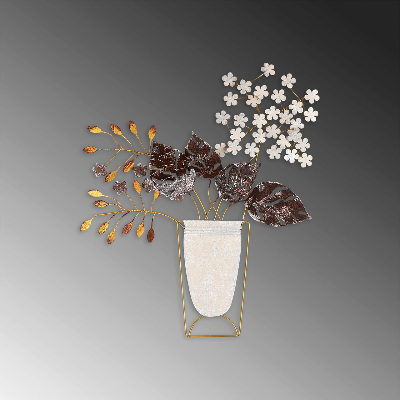 Decoratiune de perete, Flowers in Pots, Metal, Dimensiune: 47 x 55 cm, Multicolor