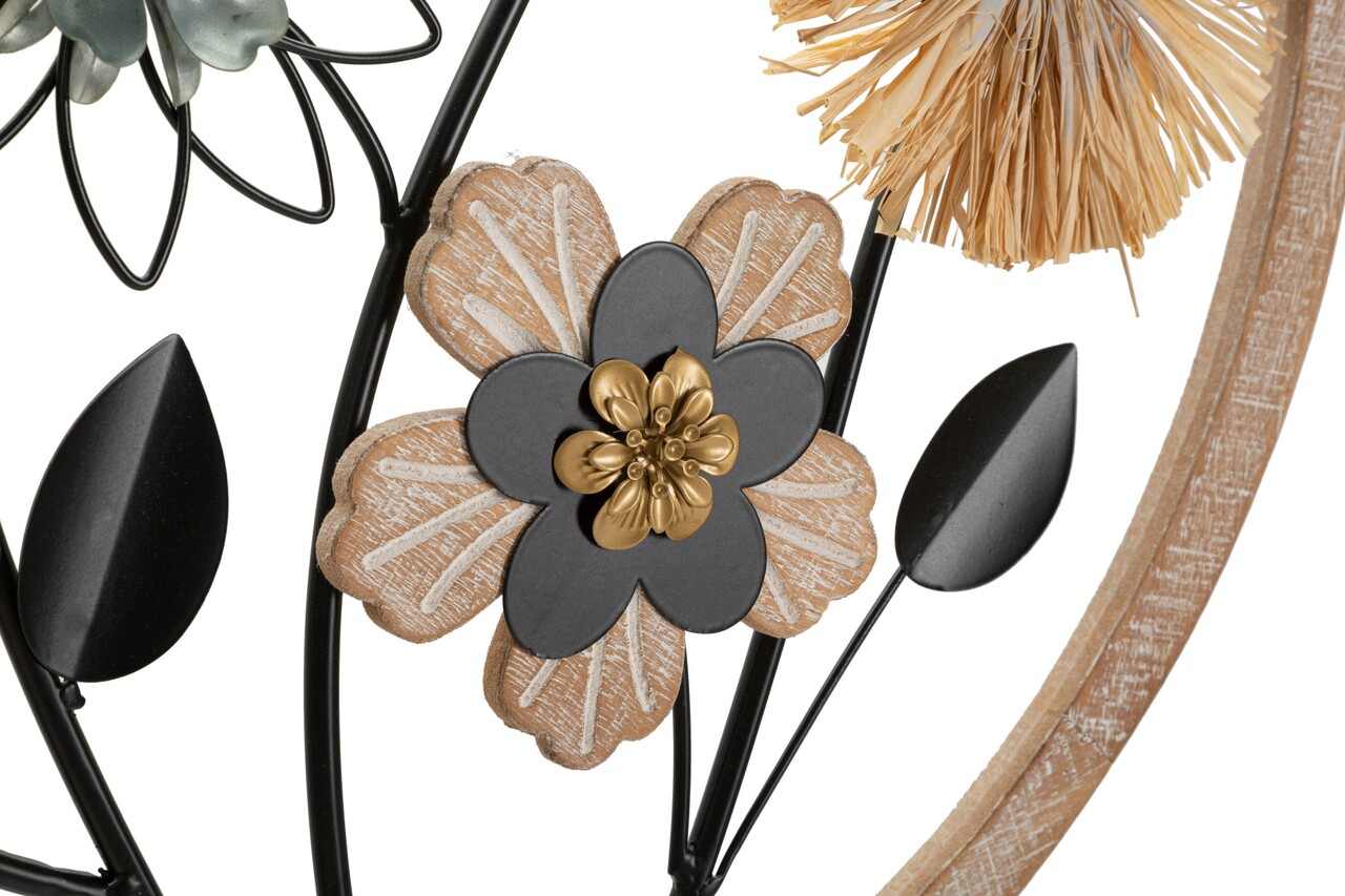 Decoratiune de perete Flowery, Mauro Ferretti, Ø50 cm, fier/MDF/rafie, maro/negru