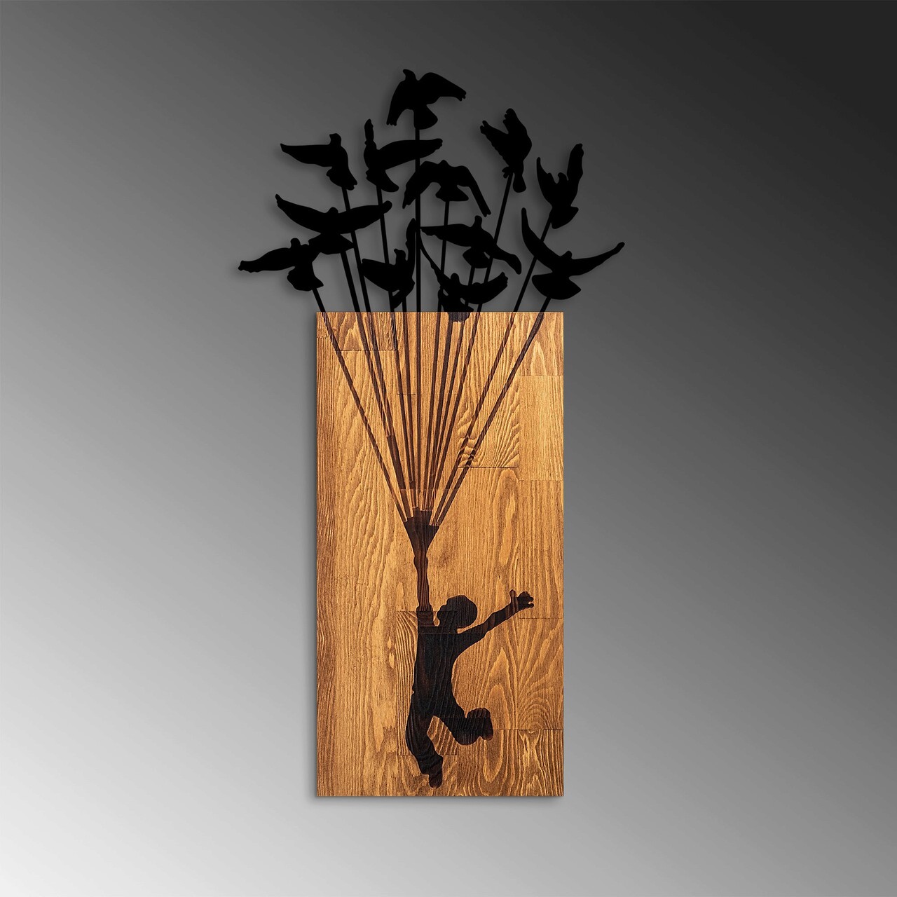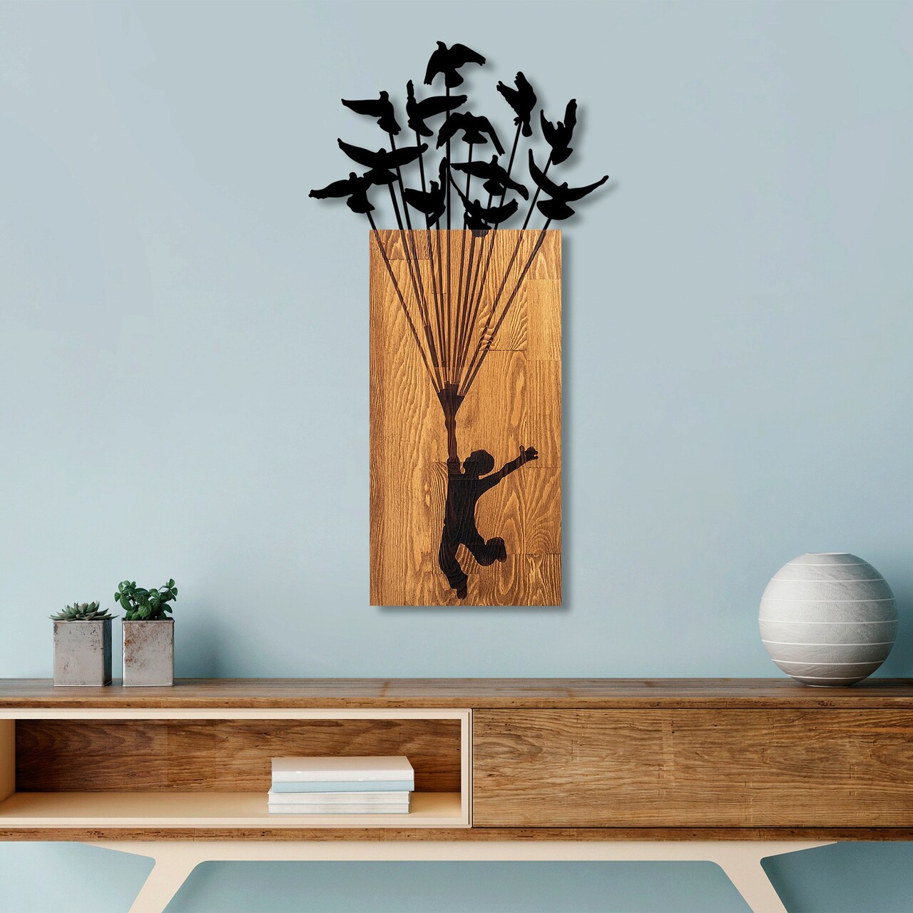 Decoratiune de perete, Flying Boy 1, Lemn/metal, Dimensiune: 45 x 86 cm, Nuc / Negru