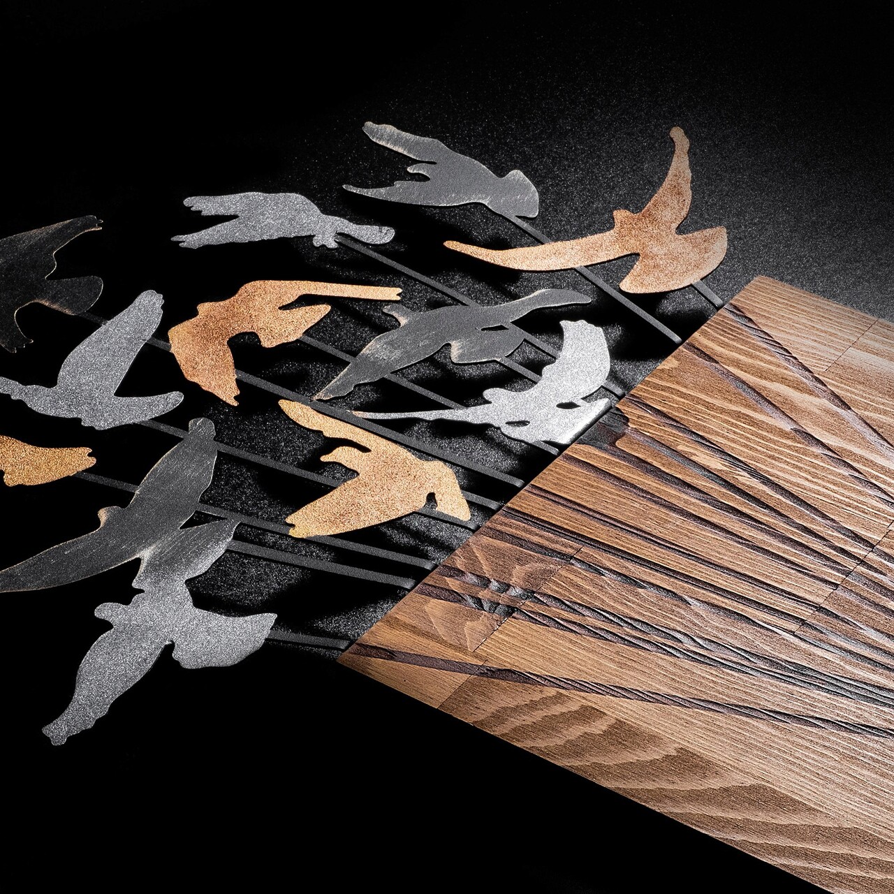 Decoratiune de perete, Flying Boy 2, Lemn/metal, Dimensiune: 45 x 86 cm, Nuc / Negru