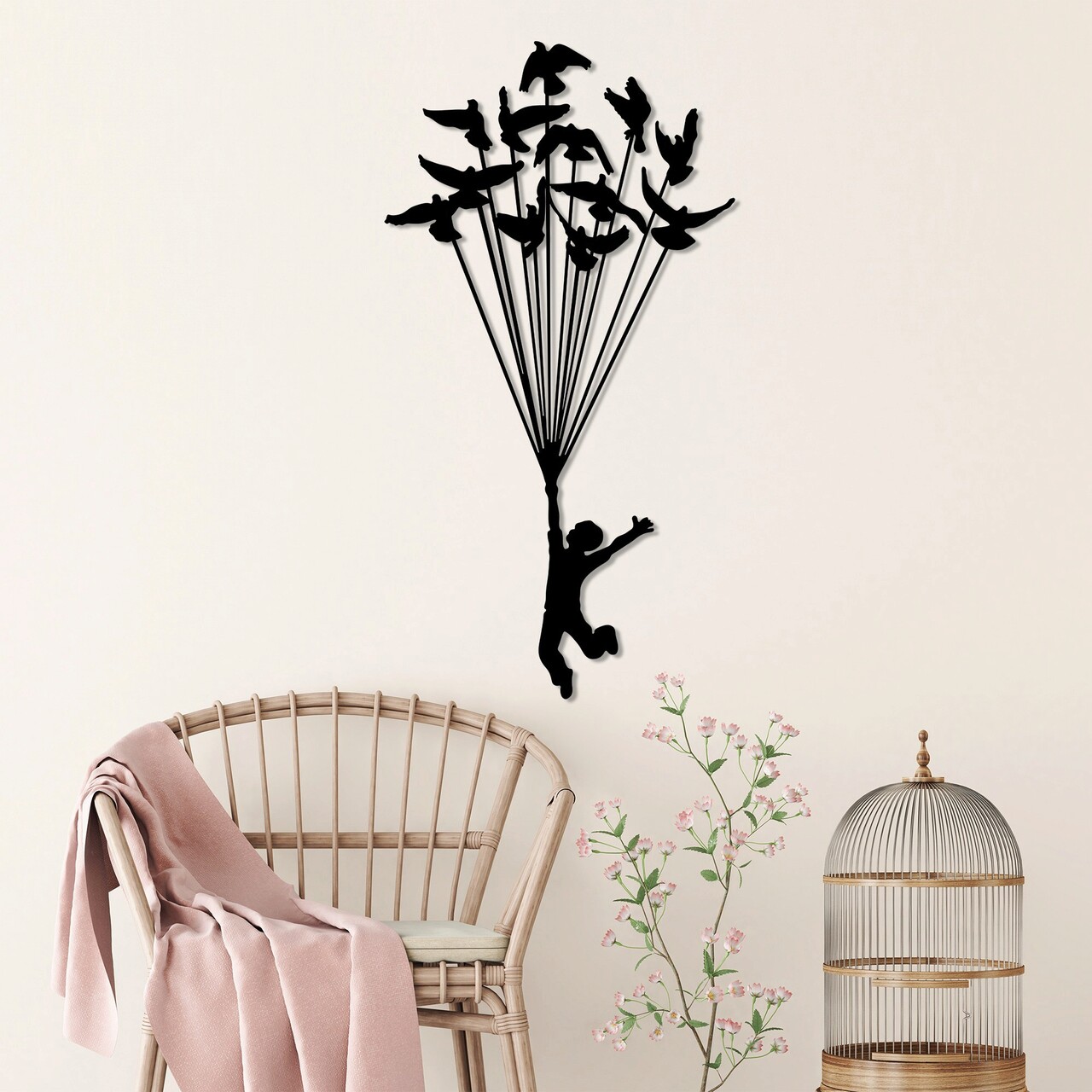 Decoratiune de perete, Flying Boy 3, Metal, Dimensiune: 45 x 85 cm, Negru