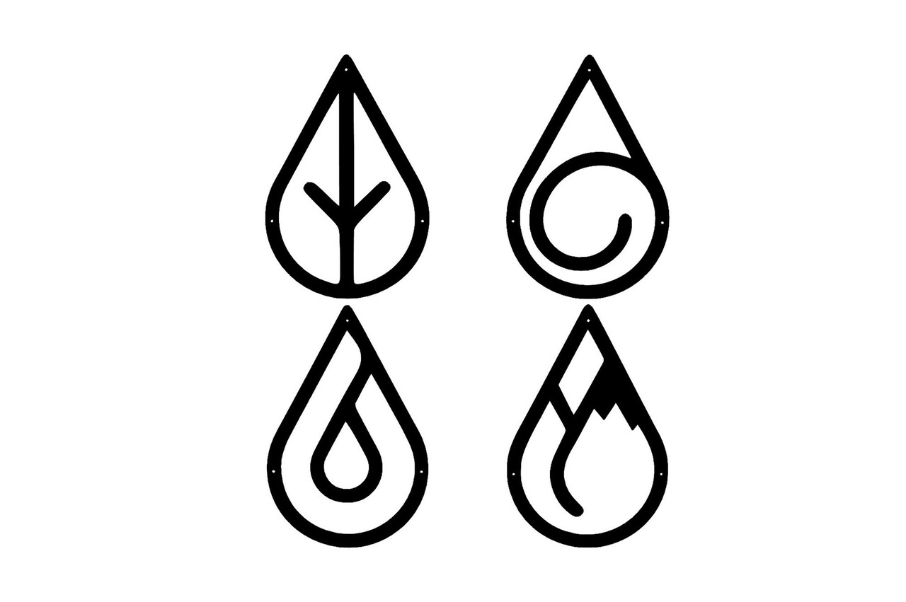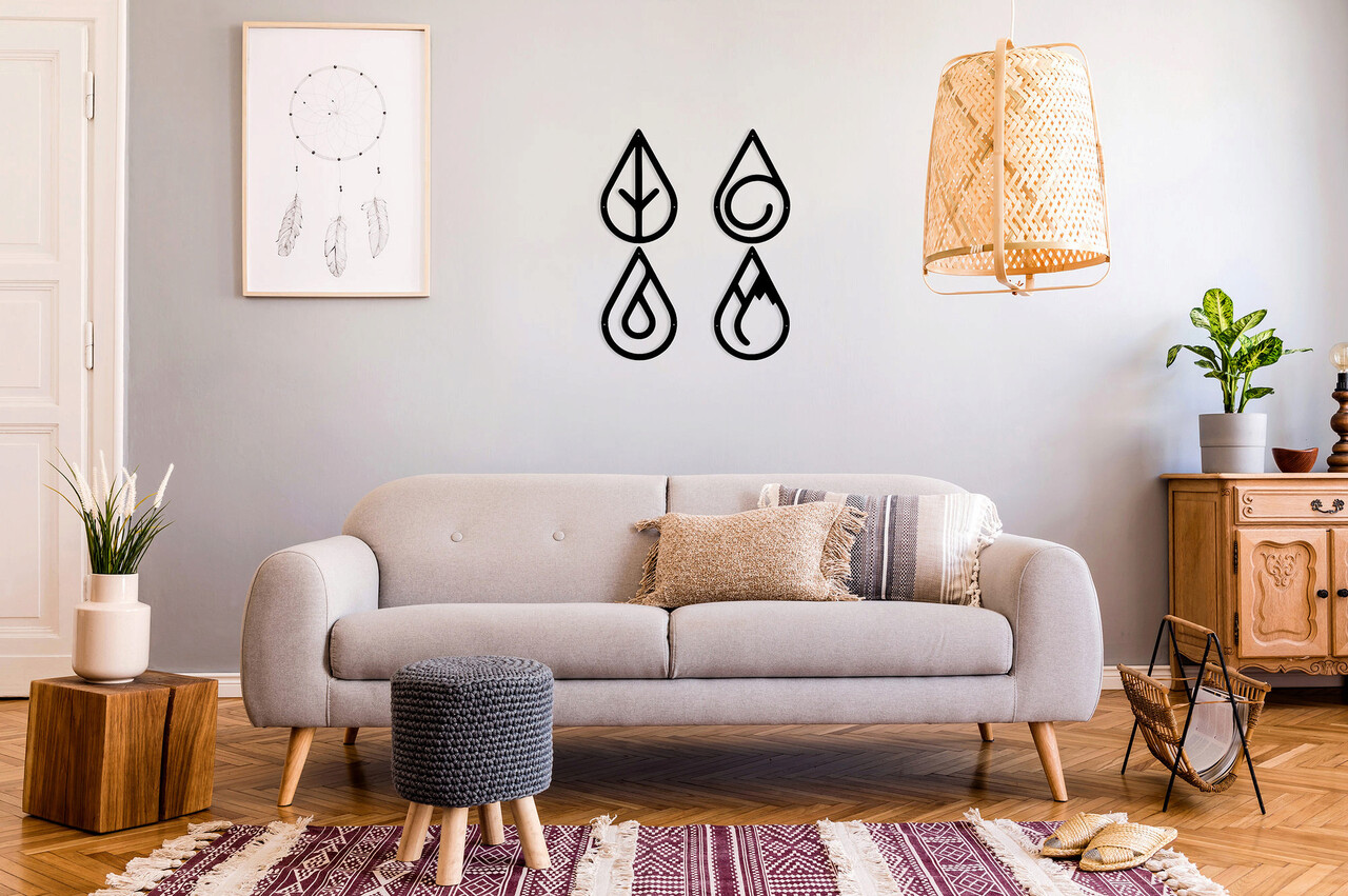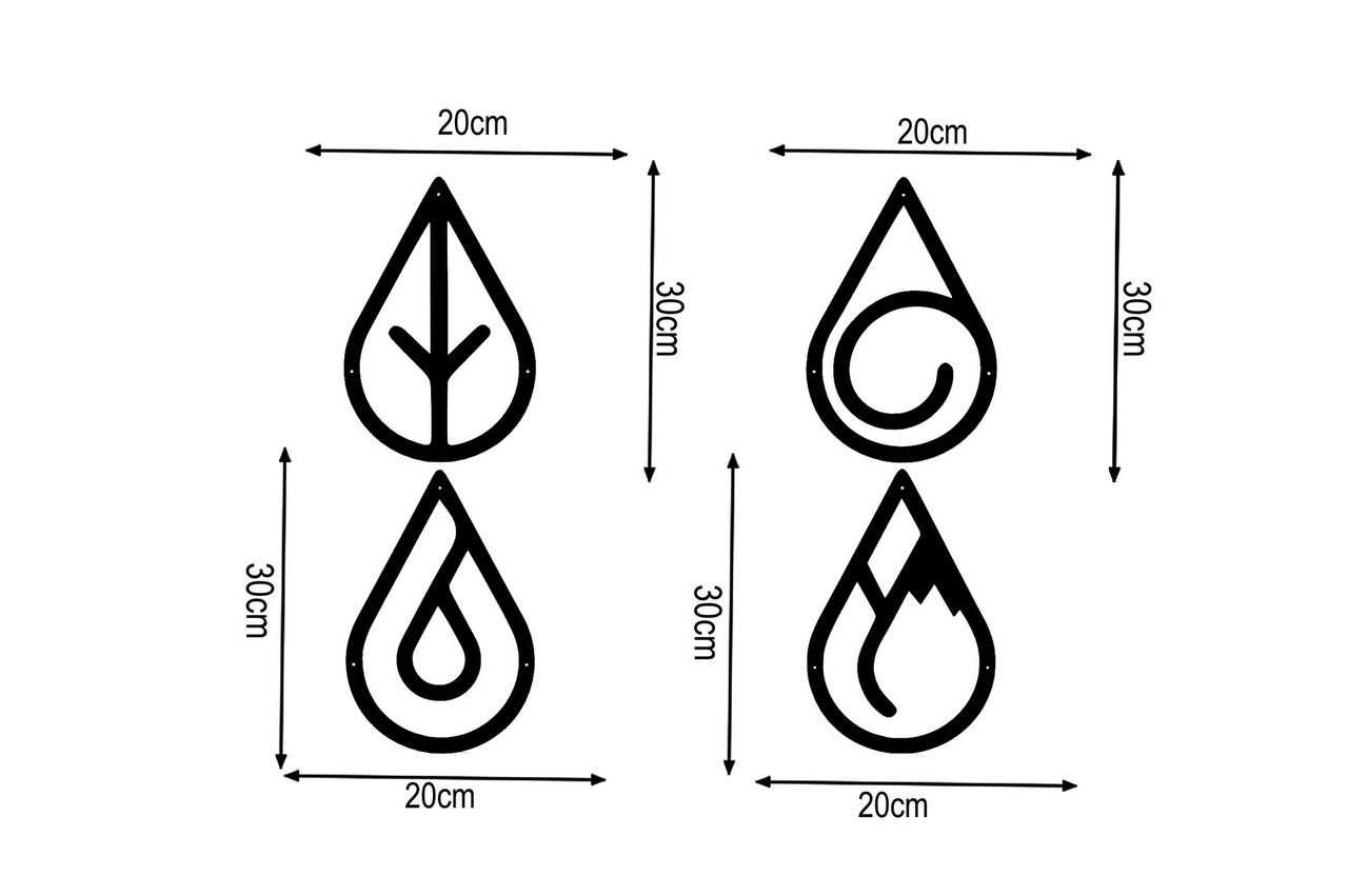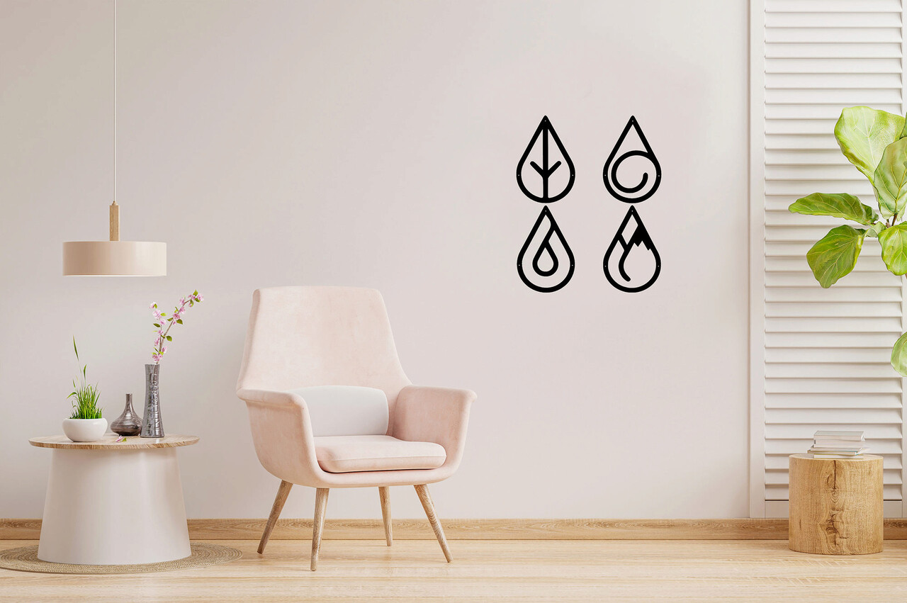 Decoratiune de perete, Four Elements, Metal, 20 x 30 cm, 4 piese, Negru