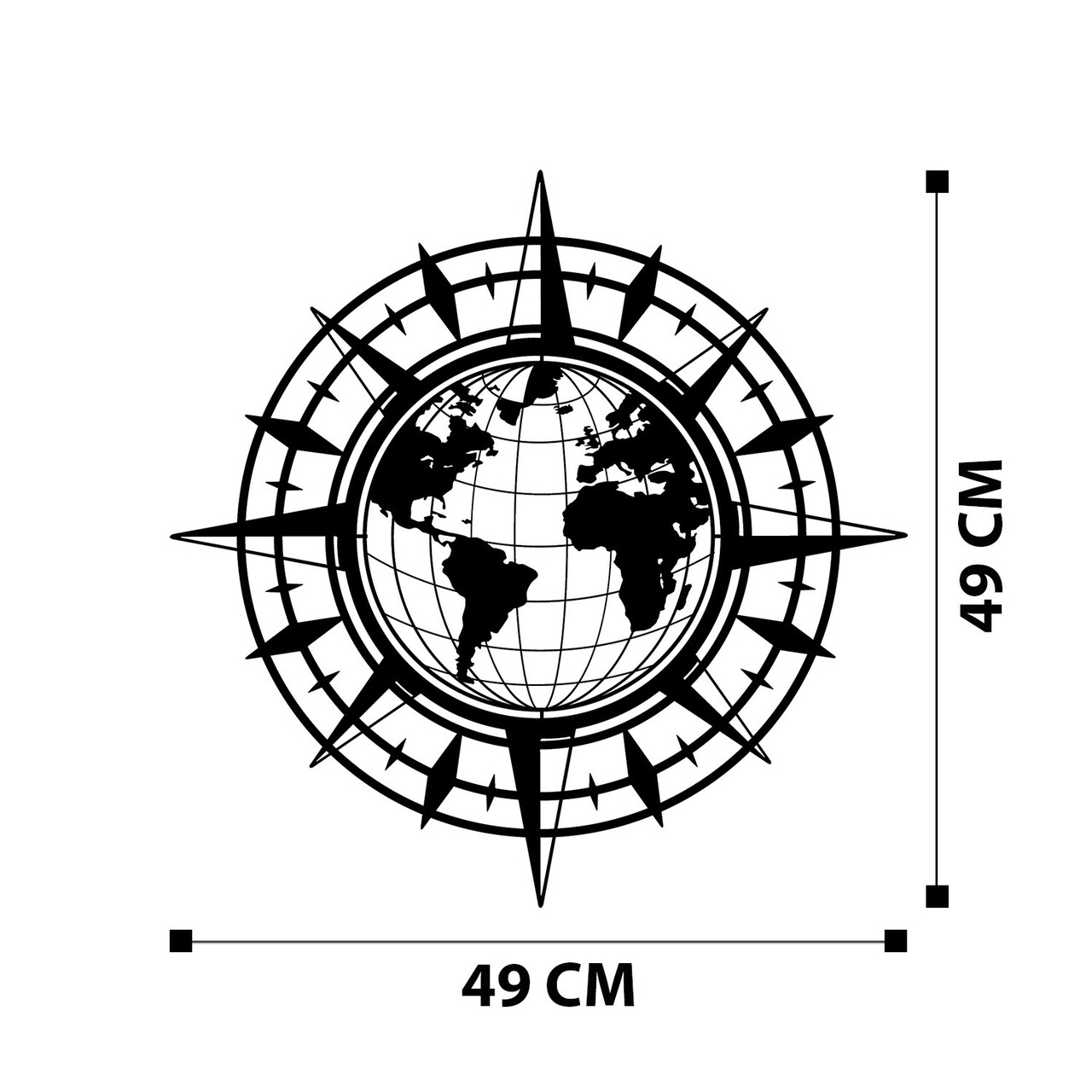Decoratiune de perete, Gercek Dunya, metal, 49 x 49 cm, negru