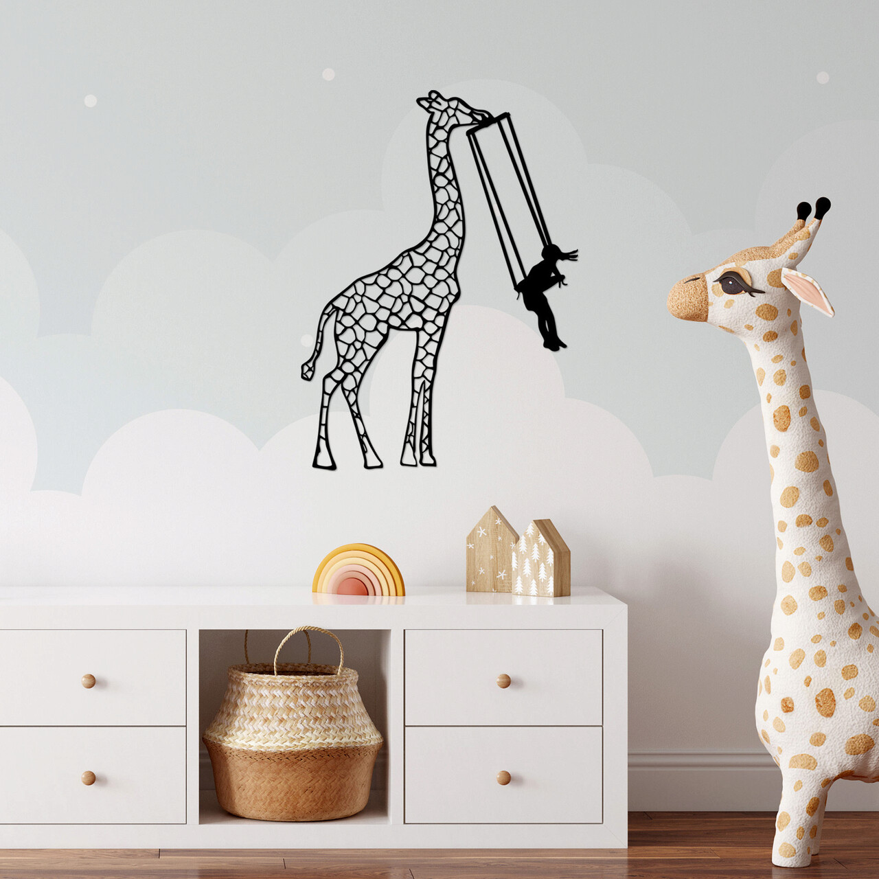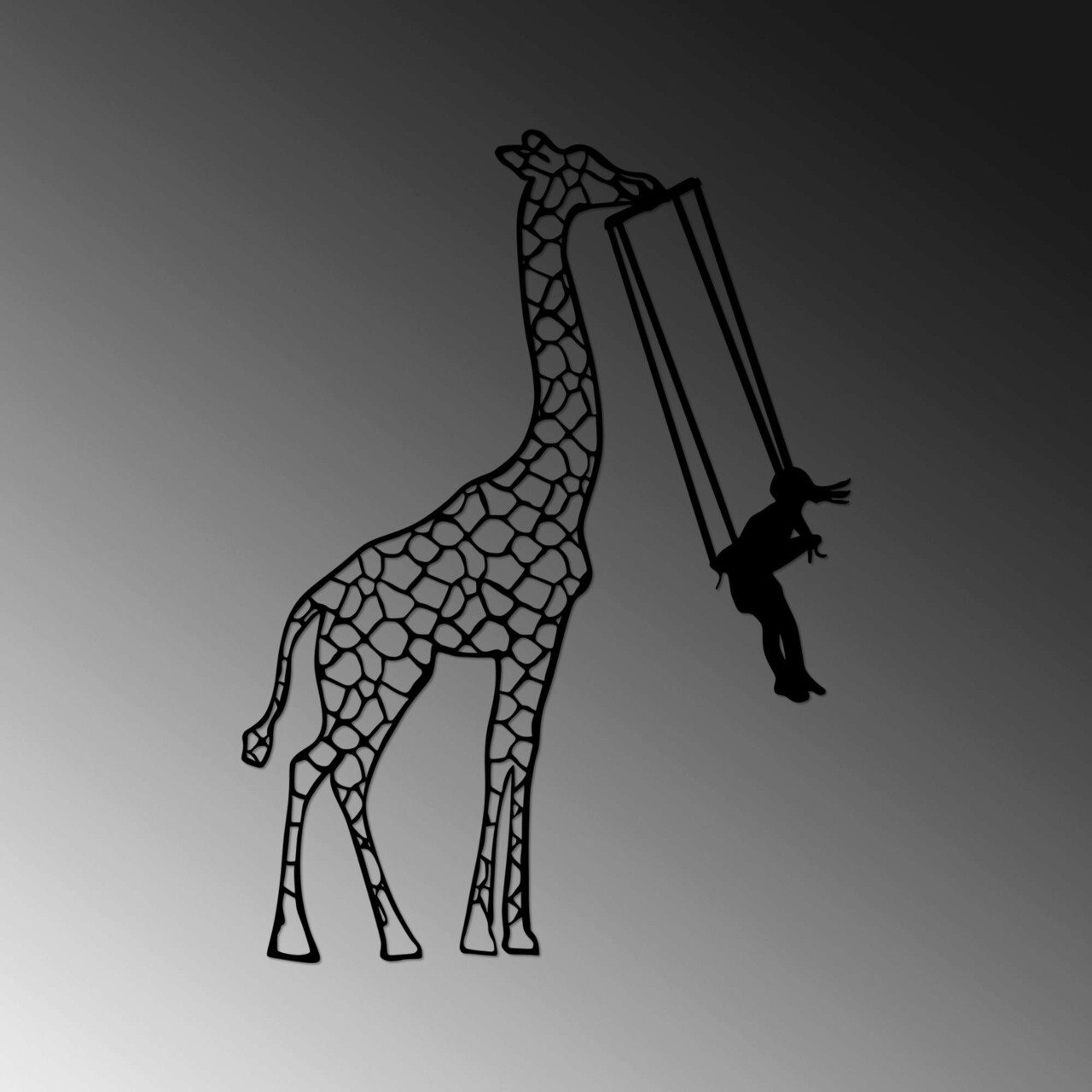 Decoratiune de perete, Girl Swinging Giraffe, Metal, Dimensiune: 51 x 70 cm, Negru