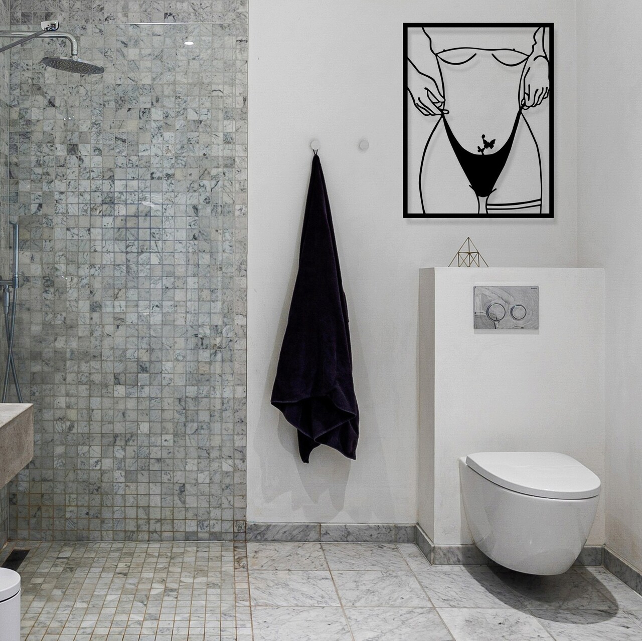 Decoratiune de perete, Girl With Butterfly Tattoo, metal, 40 x 52 cm, negru