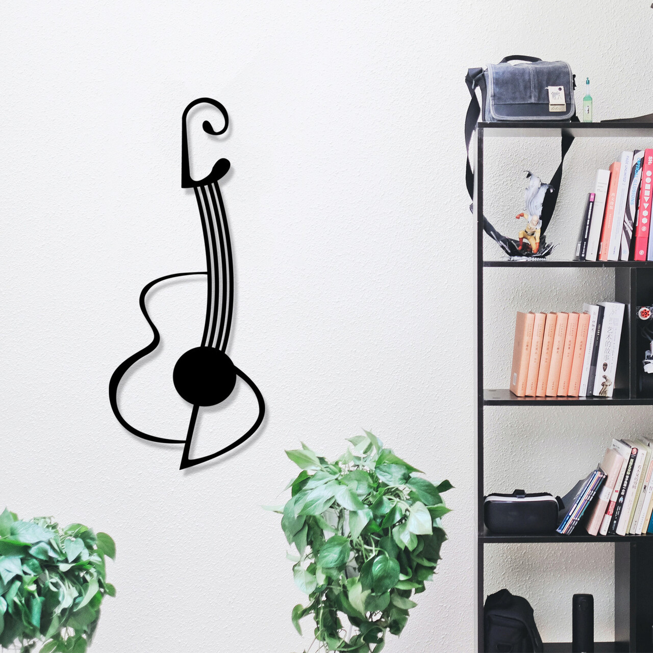 Decoratiune de perete, Gitar - M113, metal, 30 x 70 cm, negru