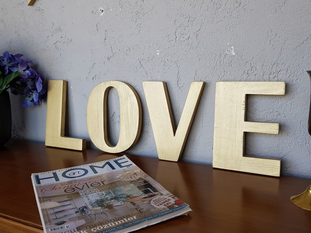 Decoratiune de perete, Gold Love, 45x2x25 cm, Auriu