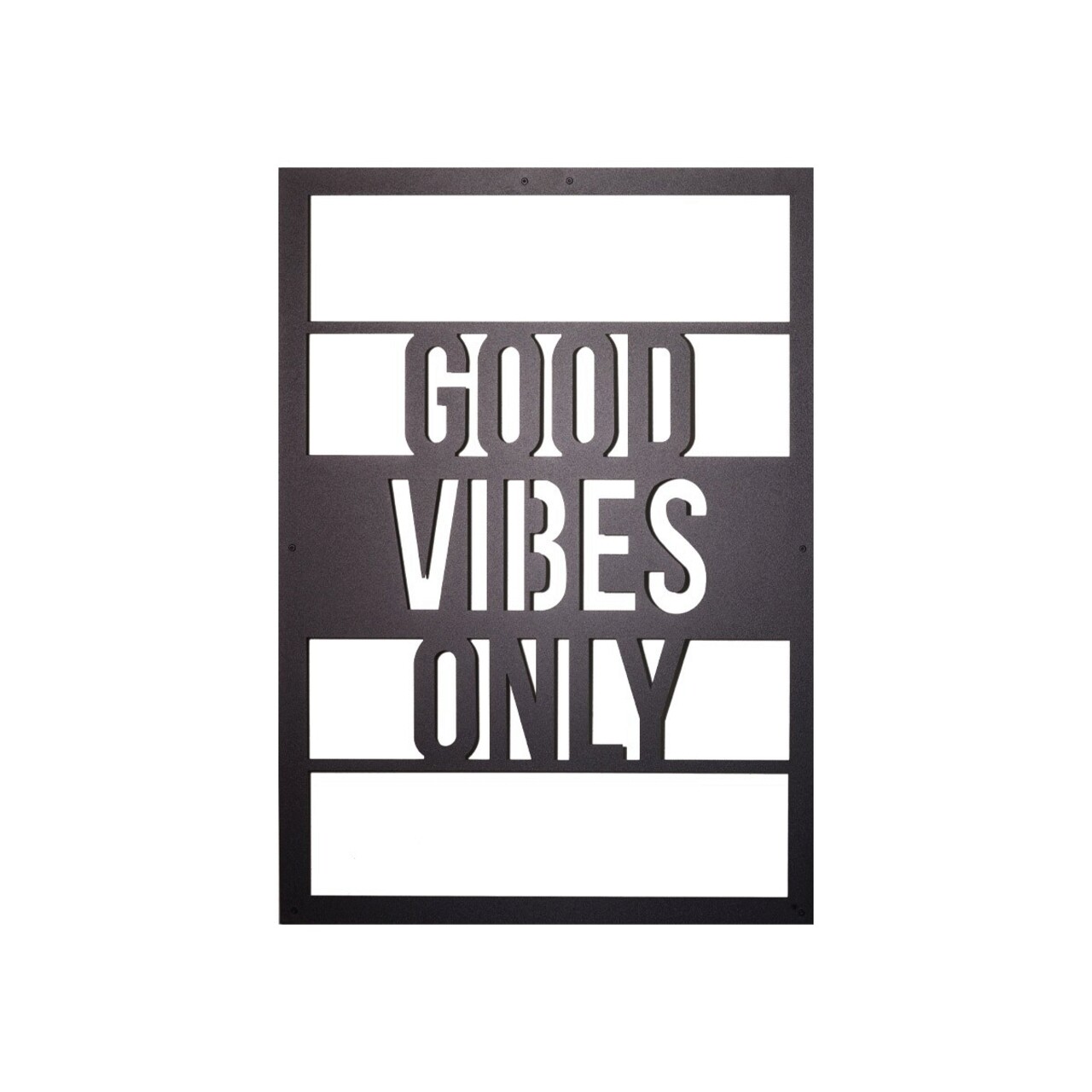 Decoratiune de perete, Good Vibes, Metal, 50 x 70 cm, Negru