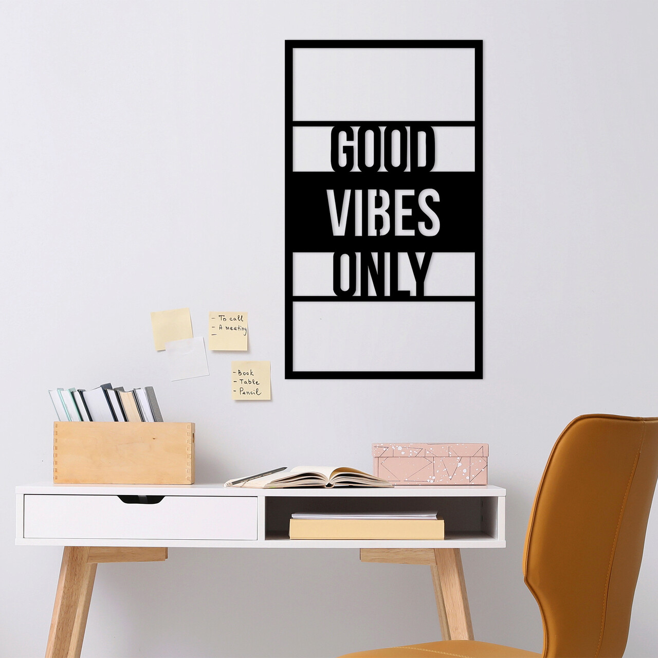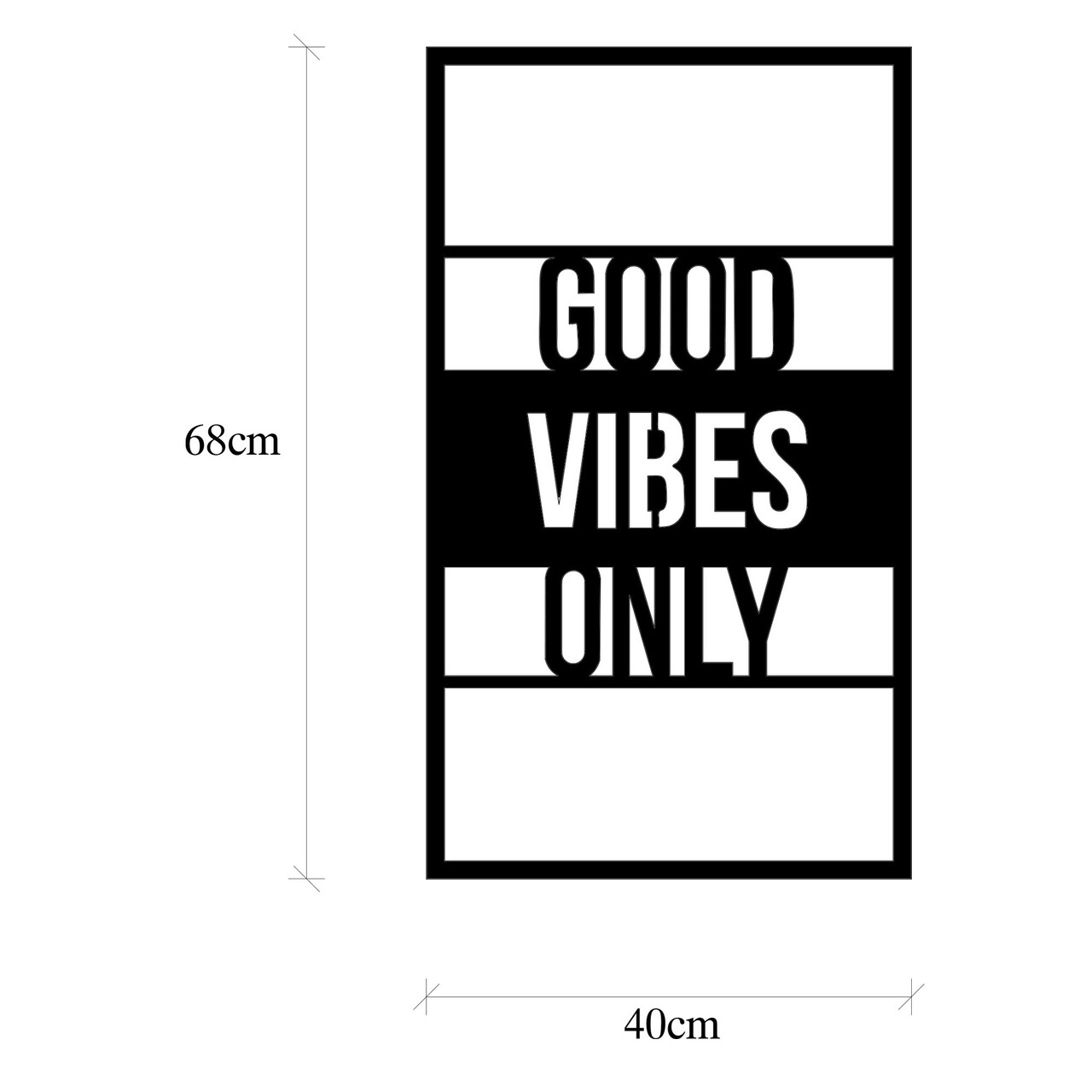 Decoratiune de perete, Good Vibes Only, Metal, Dimensiune: 40 x 1,5 x 68 cm, Negru