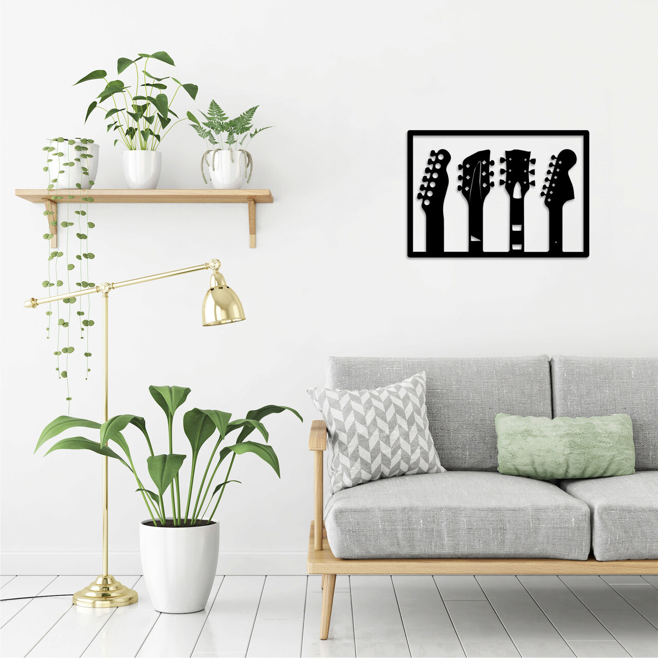 Decoratiune de perete, Guitar, Metal, Dimensiune: 46 x 32 cm, Negru