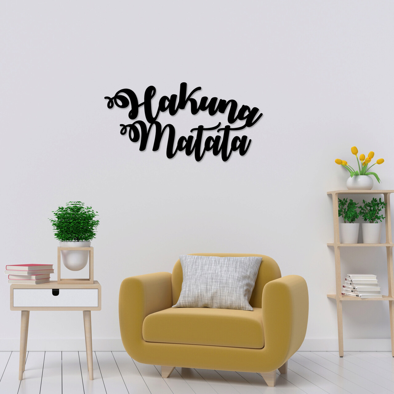 Decoratiune de perete, Hakuna Matata, metal, 70 x 35 cm, negru