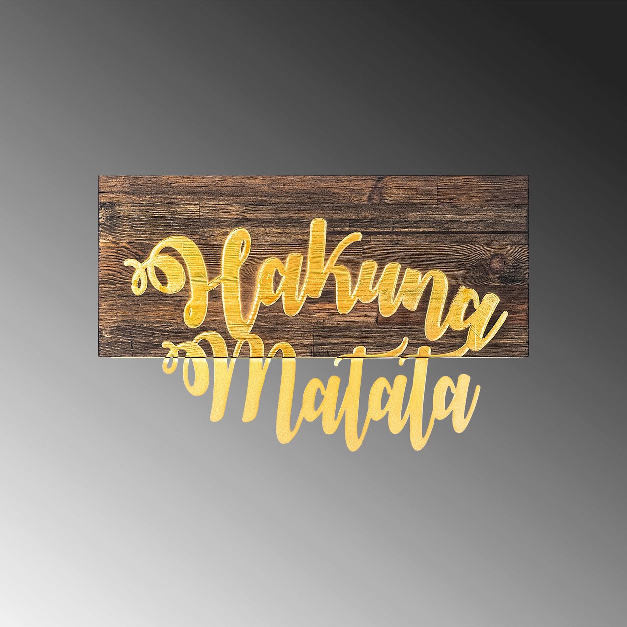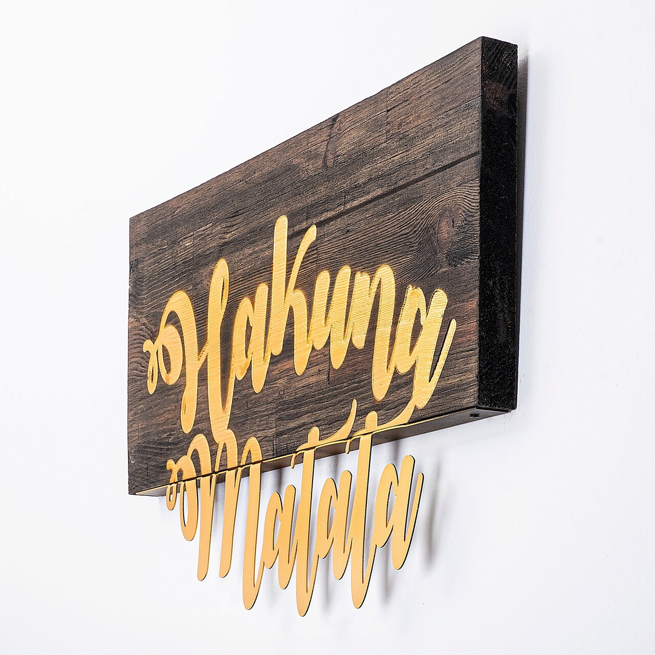 Decoratiune de perete, Hakuna Matata Metal Decor, 50% lemn/50% metal, Dimensiune: 58 x 38 cm, Nuc / Aur